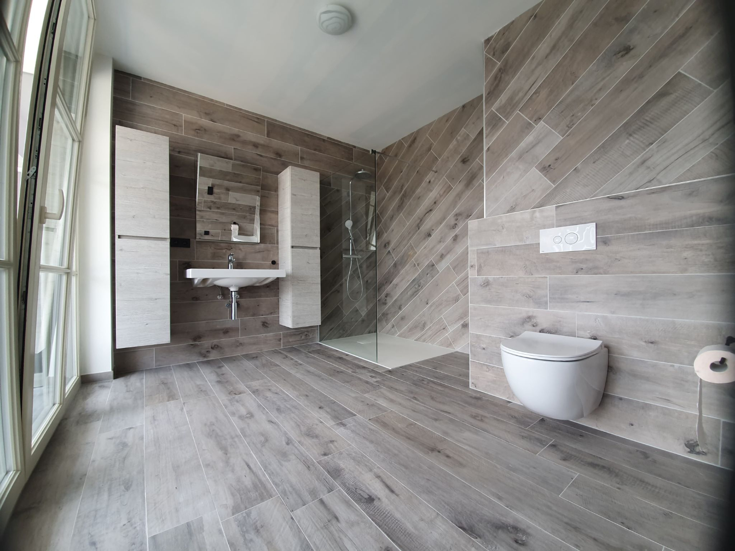 De indeling is als volgt; inkom, WC, berging, woonkamer, ingerichte keuken, 2 slpks, zeer ruime badkamer en een inpandig terras.
