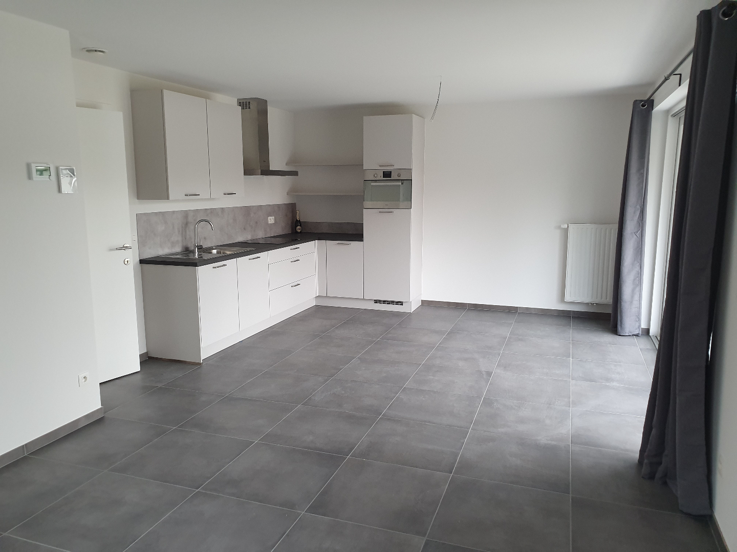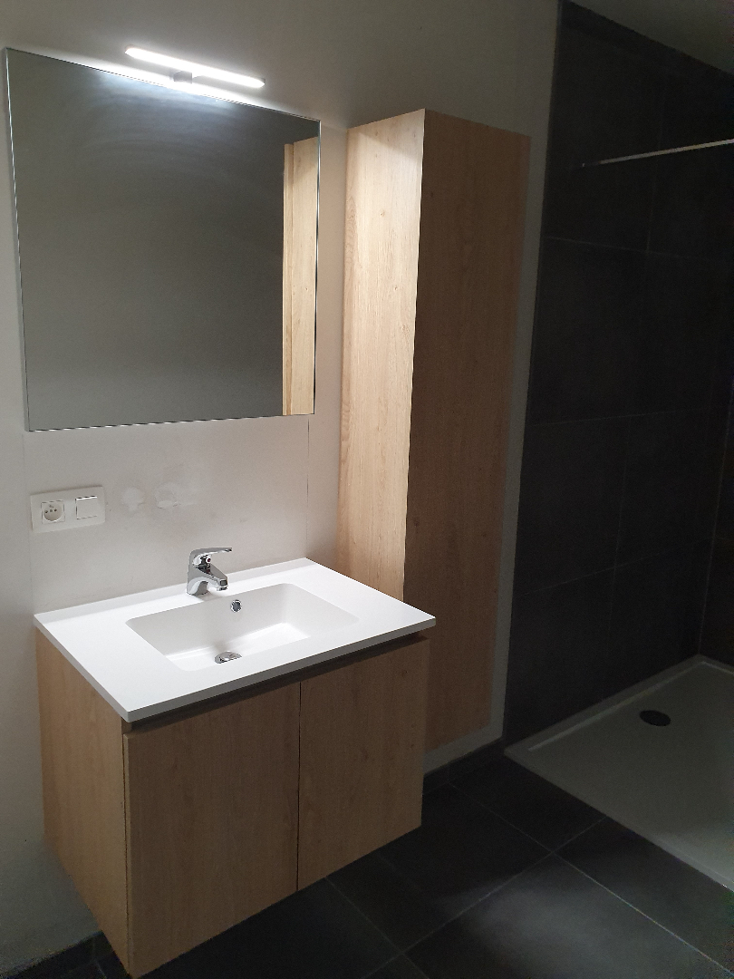 Nieuwbouwappartement met 2 slaapkamers kortbij winkels, scholen, horeca, .... Lift aanwezig. Het appartement bestaat uit een inkomhal, woonkamer met keukenhoek, sanitaire ruimte, badkamer (wastafel - ruime inloopdouche - wastafel - toilet) , 2 slaapkamers,. Terras van 10 m2. Autostaanplaats + berging in de kelder. Ventilatiesysteem. Verwarming op gas. Gemeenschappelijke kosten 65 euro per maand. Appartement wordt nog volledig opgeverfd door de verhuurder. Verlichting grotendeels voorzien en vestaire-kast in de inkomhal wordt nog geplaatst. Voor meer info contacteer ons op info@vastgoedfransen.be of bel 011/64 55 00.