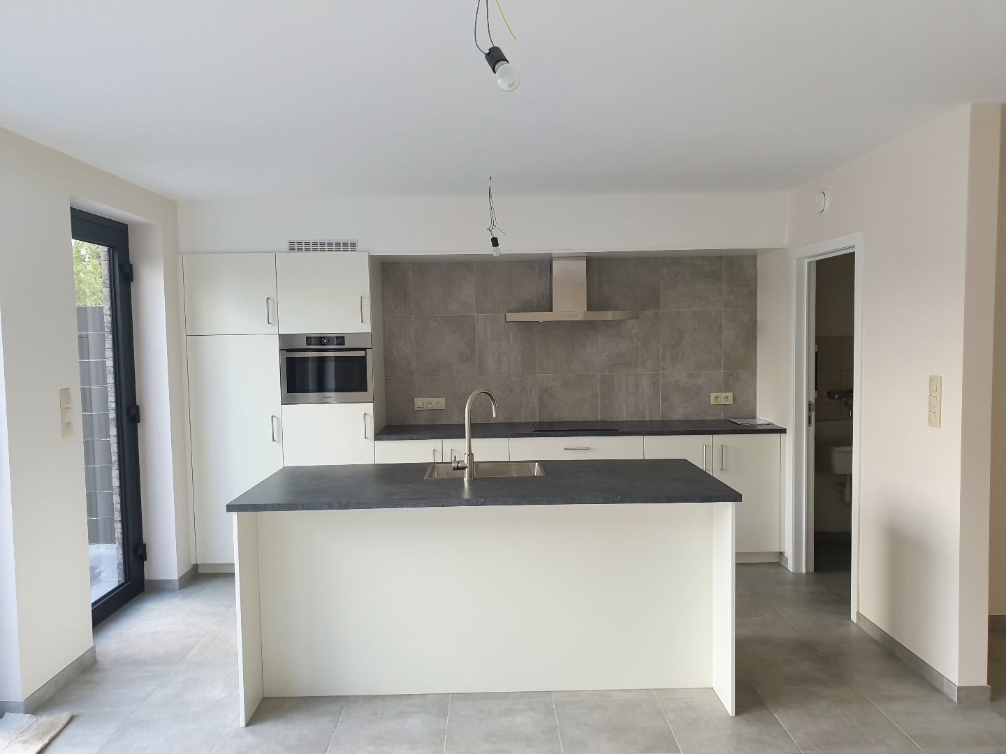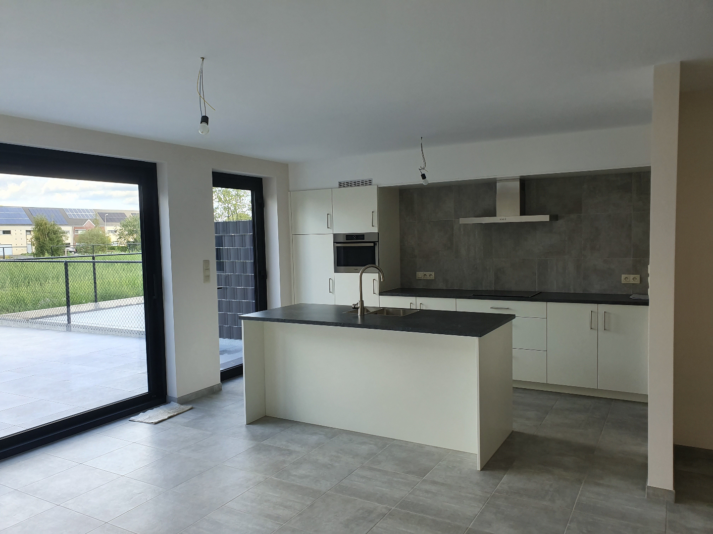 Prachtig nieuwbouw gelijkvloers 2 slaapkamer appartement kortbij het centrum van Hechtel, winkels ,scholen, .... Terras van 54 m2. Het appartement bestaat uit een inkomhal, toilet apart, 2 slaapkamers, badkamer (douche/wastafel), woonkamer met keukenhoek (keuken hypergeïnstalleerd ) met eiland, sanitaire ruimte. Terras betegeld en omheind. Autostaanplaats + berging in de kelder. Vloerverwarming, verwarming op gas, toiletten op regenwater. Gemeenschappelijke kosten zijn 40 euro per maand. Zonnepanelen voor 1800 kw. Voor meer info contacteer ons 011/64 55 00 of info@vastgoedfransen.be.