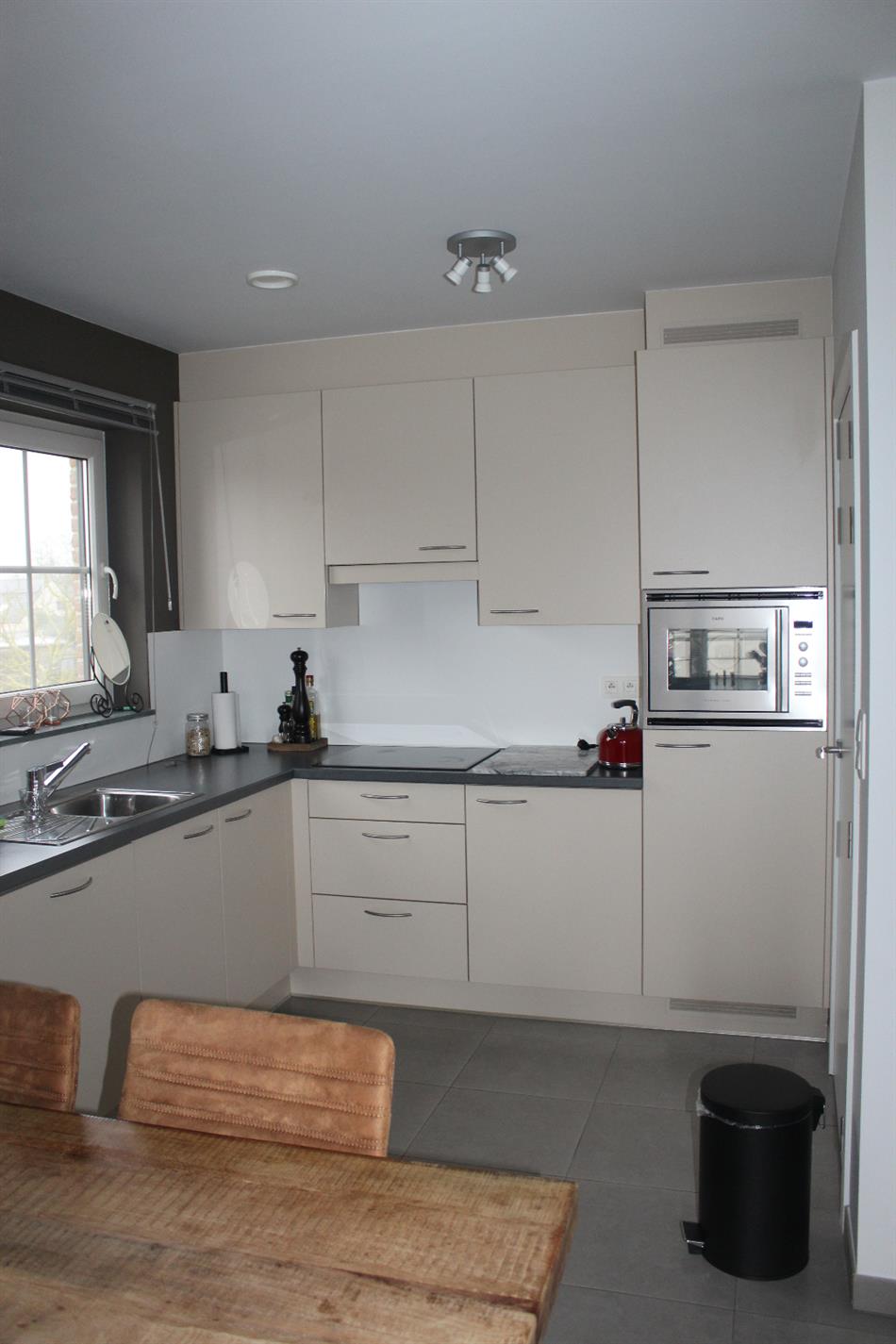 Rustig gelegen duplex-appartement kortbij het centrum van Neerpelt bij winkels, scholen, ... Het appartement bestaat uit inkomhal, woonkamer met keukenhoek, berging, badkamer, slaapkamer, trap naar boven - grote slaapkamer met bergingruimte + dressing. Groot terras van 20 m2. Autostaanplaats + overdekte autostaanplaats. Gemeenschappelijke fietsenstalling + speelweide. Verwarmt op gas. Gem.kosten inclusief. Voor meer info contacteer ons 011/645500 of info@vastgoedfransen.be