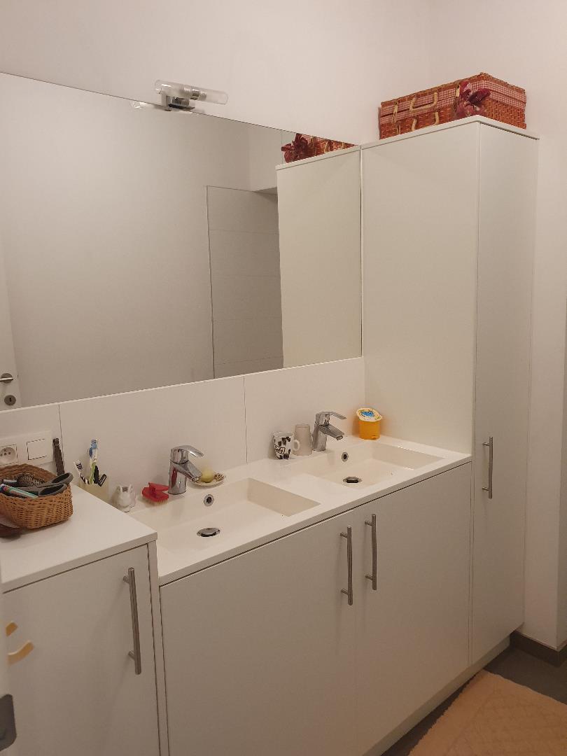 IN OPTIE! Goed gelegen 2 slaapkamer appartement kortbij winkels, scholen, horeca, ... Verwarming op gas. Vloerverwarming. Inkomhal, berging, badkamer (dubbele wastafel, inloopdouche), woonkamer met keukenhoek met eiland, 2 slaapkamer. Ruim terras op het zuiden 30 m2. Autostaanplaats + berging in de kelder. Lift aanwezig. Gemeenschappelijke kosten 50 euro per maand. Voor meer info contacteer ons info@vastgoedfransen.be of 011 64 55 00.