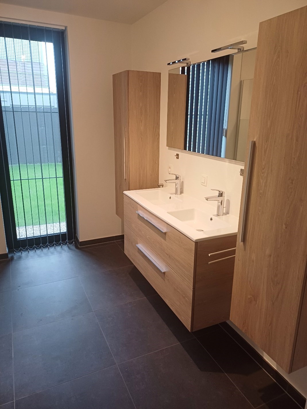 dubbele lavabo, apart gasten toilet met lavabo, 2 slaapkamers.