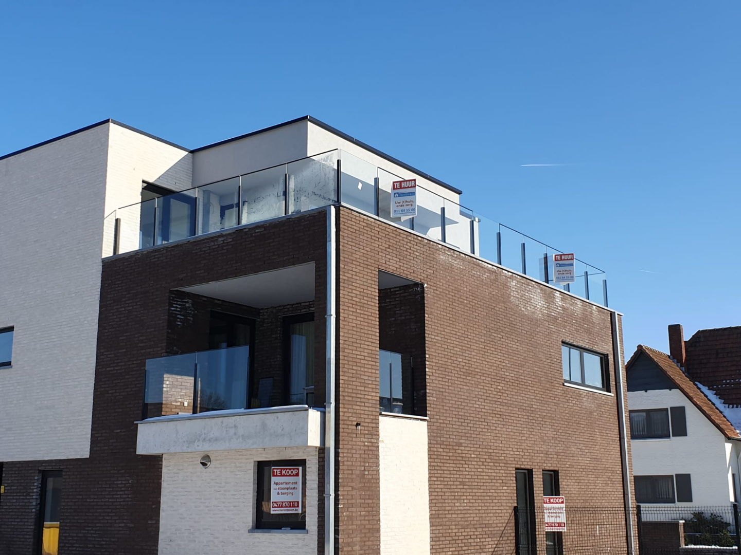 Nieuwbouw penthouse met zuidelijk terras (50 m2) te Herent (Pelt). Vloerverwarming. Volledig geverfd. Lift aanwezig. De penthouse bestaat uit een inkomhal, woonkamer met keukenhoek (hyper-geinstalleerd), 1 slaapkamer, badkamer (inloopdouche/wastafel), toilet apart, sanitaire ruimte (ventilatiesysteem/hoogrendementsgasketel), bureauruimte/berging. Ruim betegeld terras van 50 m2. Autostaanplaats + berging in de kelder. Gemeenschappelijke kosten 50 euro per maand. Voor meer info contacteer ons 011/645500 of info@vastgoedfransen.be