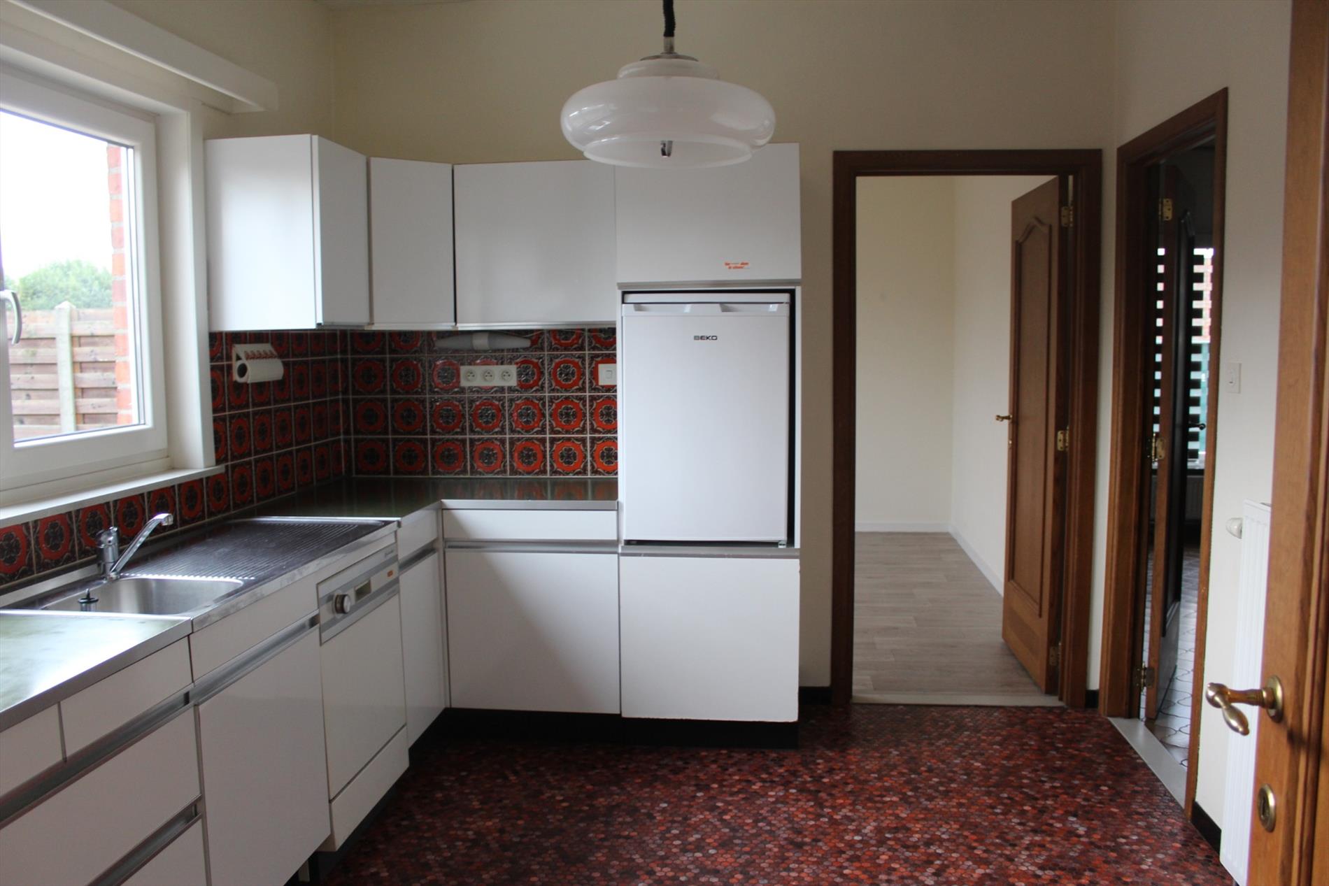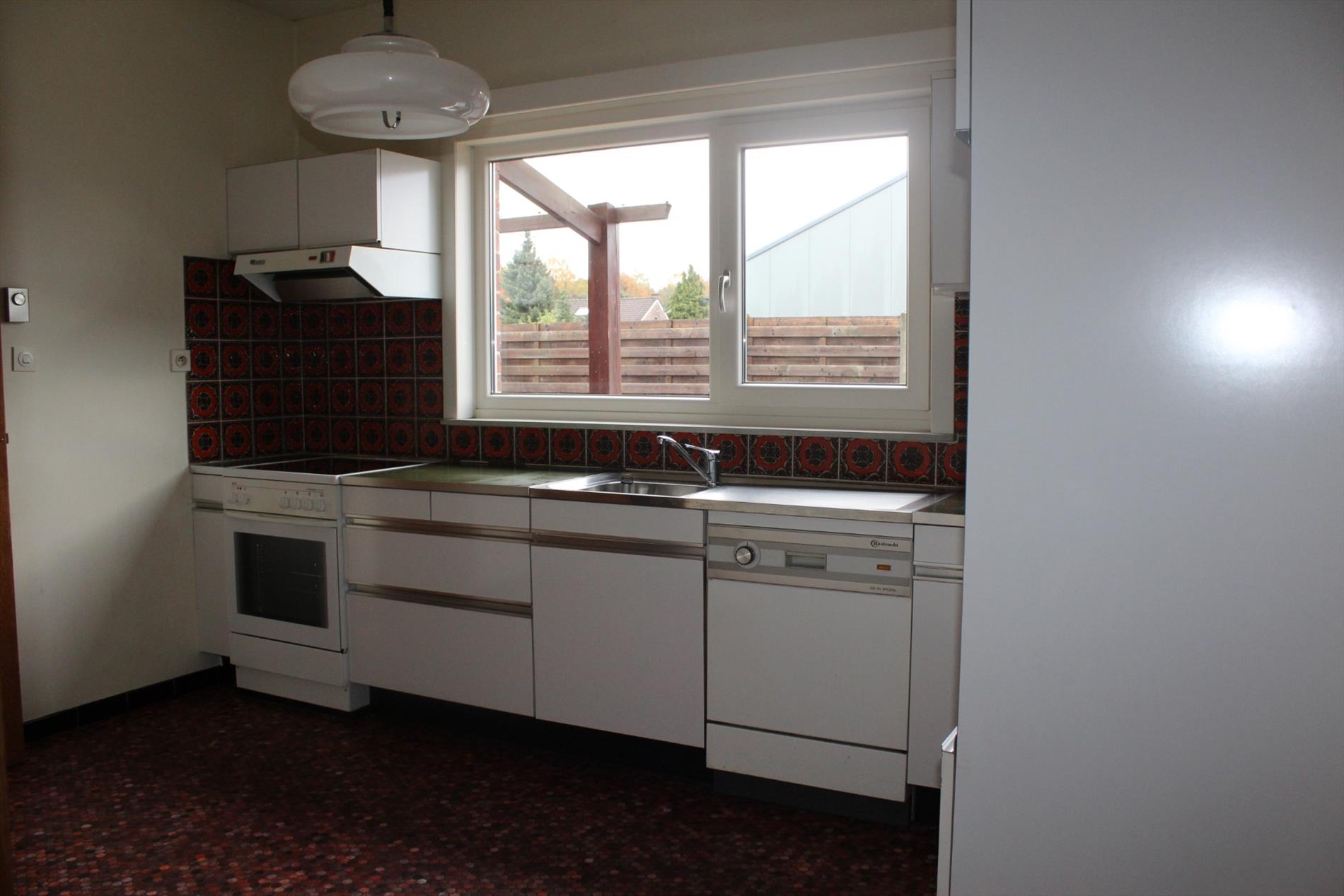 Rustig gelegen bungalow-woning te Achel kortbij winkels, horeca, .. De woning bestaat uit een inkomhal, woonkamer, 3 slaapkamers, keuken (oven-elektrisch vuur- koelkast), badkamer (bad/douche/wastafel), inpandige garage, overdekt terras, tuin. Kortom een aangename woning
