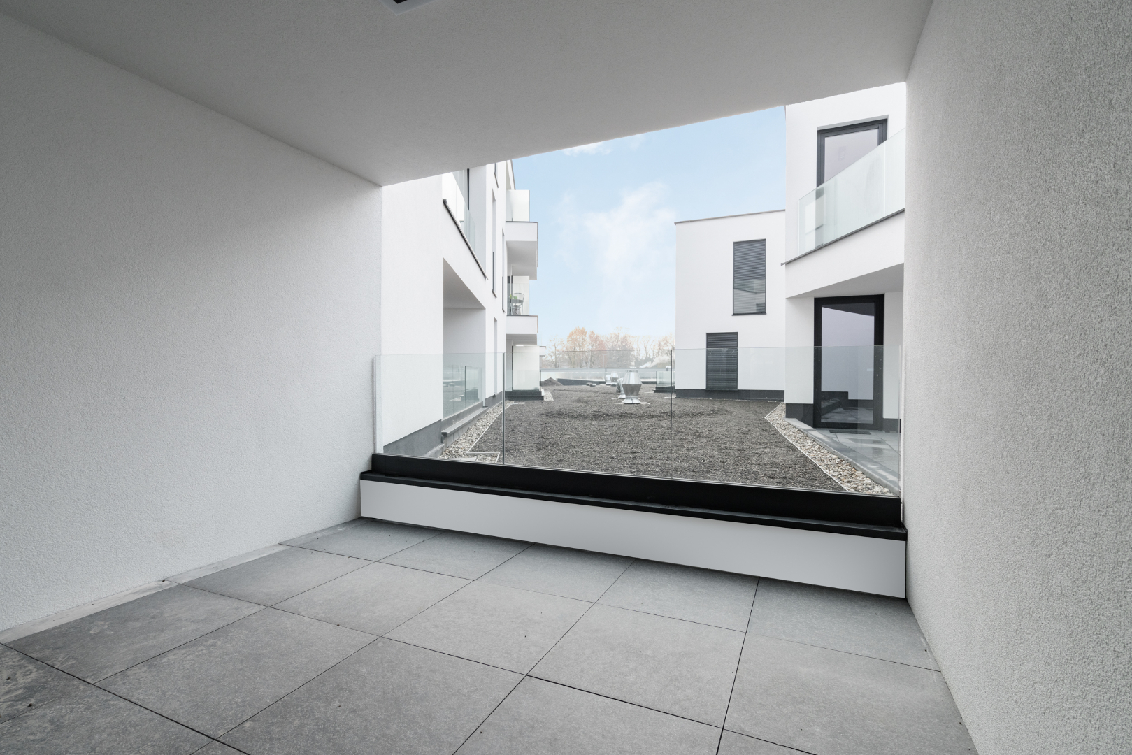 Appartement gelegen op een eerste verdieping met twee slaapkamers, kelderruimte en ondergrondse staanplaats voor de auto. Mooi terras met zicht op de binnentuin.