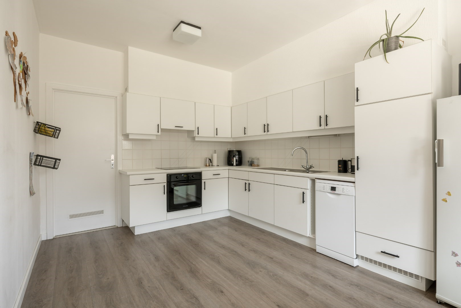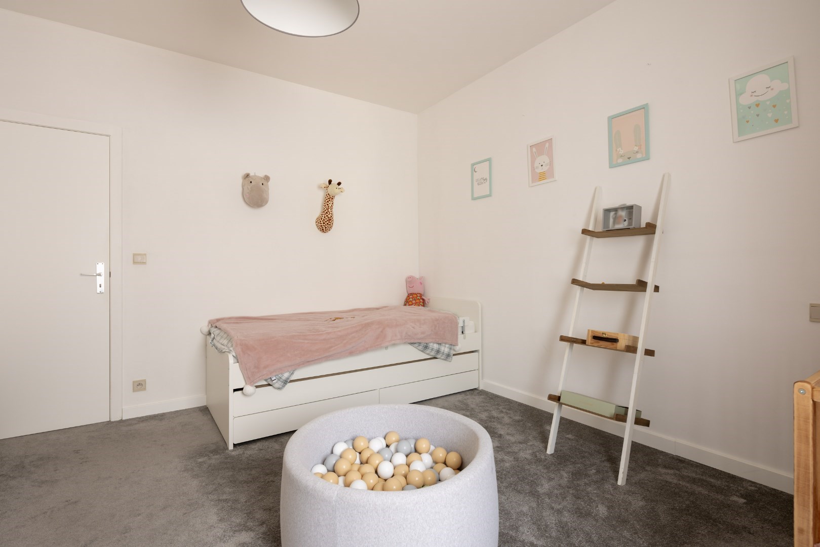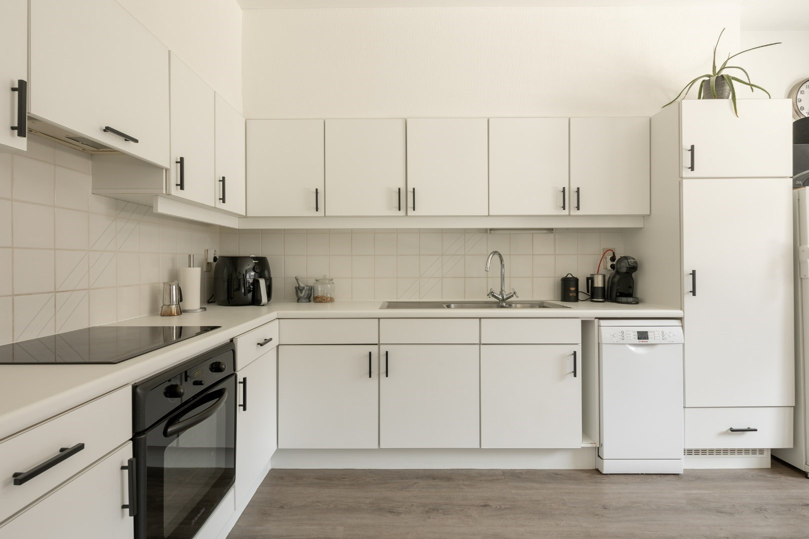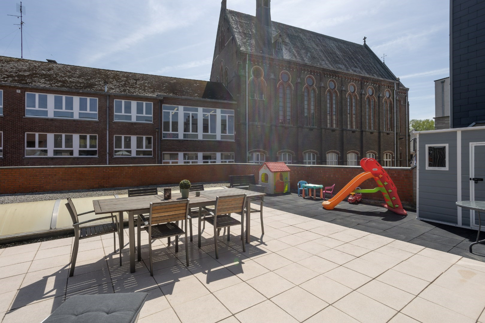 Vanuit de gemeenschappelijke inkomhal, kom je in een privatieve hal met toilet. Van hieruit komen we terecht in een ruime open leefruimte, met aansluiting aan het aanpalende zeer ruime terras. Het leuke is dat de ramen hier ook volledig opengezet kunnen worden, waardoor het een mooi geheel wordt met zomerse temperaturen. Aanpalend de leefruimte bevindt zich ook de keuken met een nieuw inductievuur, een oven, nieuwe vaatwasser en spoelbak. Hiernaast is de berging zodat je extra voorraad kan stockeren vlakbij de keuken.