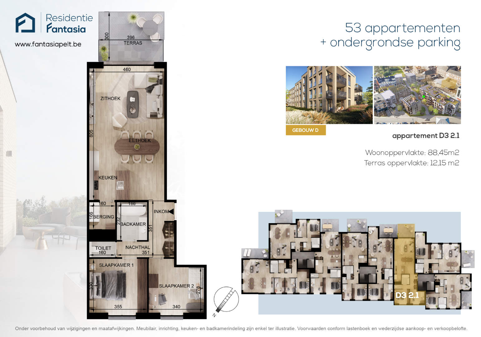Dit project legt de nadruk op zijn comfort, kwaliteit en energieprestaties. Het is gelegen op slechts circa 500 meter van het centrum van Neerpelt, met talrijke winkels en vele andere faciliteiten, alsook vlakbij het openbaar vervoer. Dankzij geothermische warmtepompen in combinatie met een ruim aantal zonnepanelen zijn de appartementen zo goed als, tot zelfs volledig (!) energieneutraal en véle malen zuiniger als een “BEN”-appartement. Ook is er bijzondere aandacht gegaan naar de akoestische prestaties van de appartementen, zowel op het vlak van omgevingslawaai, contact- en luchtgeluid, alsook installatielawaai.