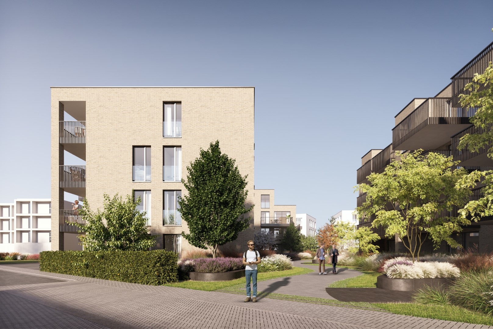 * Alle appartementen zijn voorzien van vloerverwarming en worden energie-efficiënt passief gekoeld gedurende warmere periodes. Samen met de groendaken en een zomerbypass op de ventilatiesystemen type D, wordt oververhitting tegengegaan.