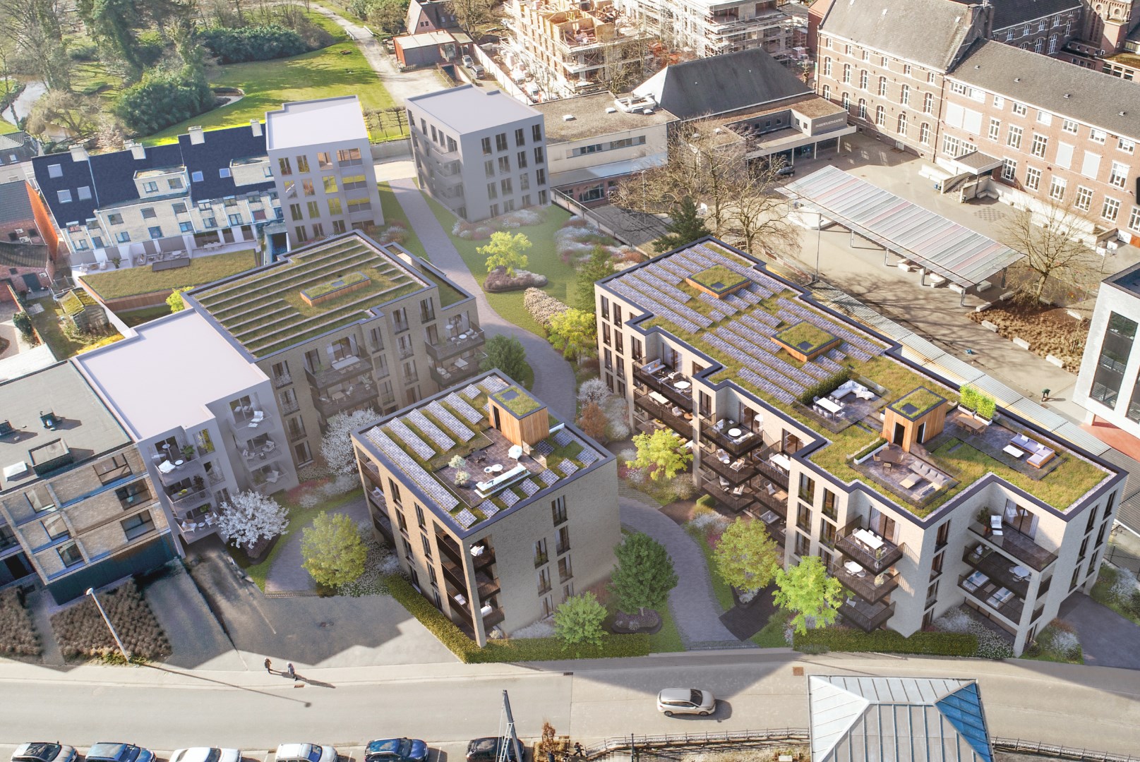 * Dank zij geothermische warmtepompen in combinatie met een ruim aantal zonnepanelen zijn de appartementen zo goed als, tot zelfs volledig (!) energieneutraal en véle malen zuiniger als een “BEN” appartement.