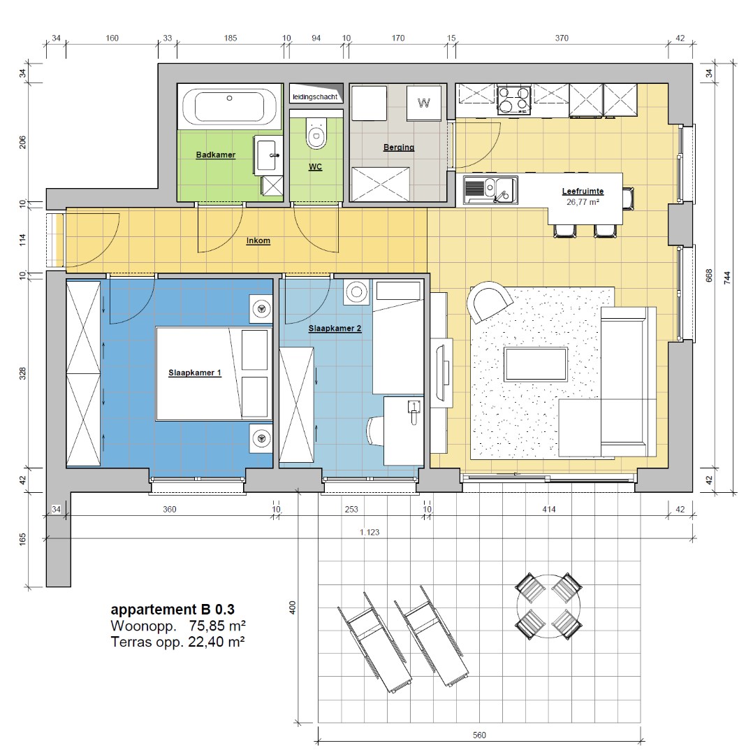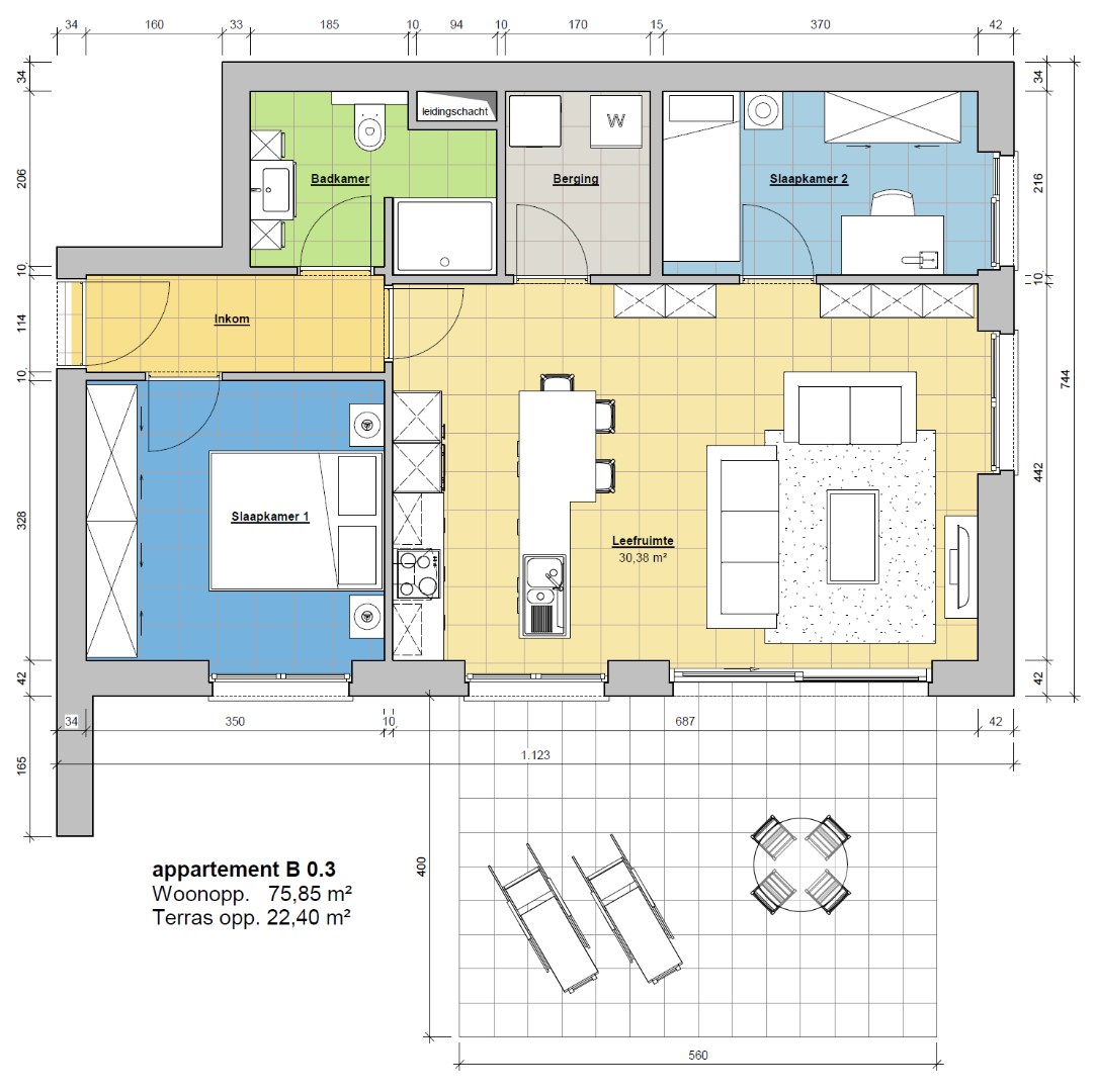 - Terras van 22.40m²