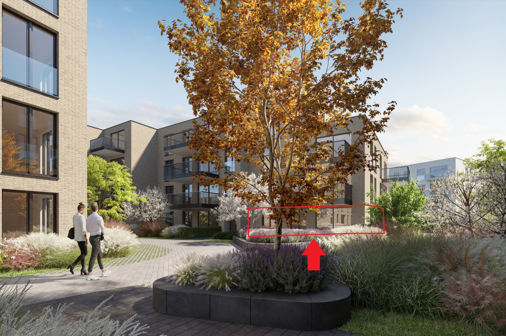De volledig aangelegde gemeenschappelijke tuin met retentie- en irrigatiesysteem en LED-verlichting zit mee in de verkoopprijs. Ook zal het systeem Bringme ® voorzien worden voor digitale brievenbussen en pakjesboxen, digitale conciërge, nummerplaatherkenning…
