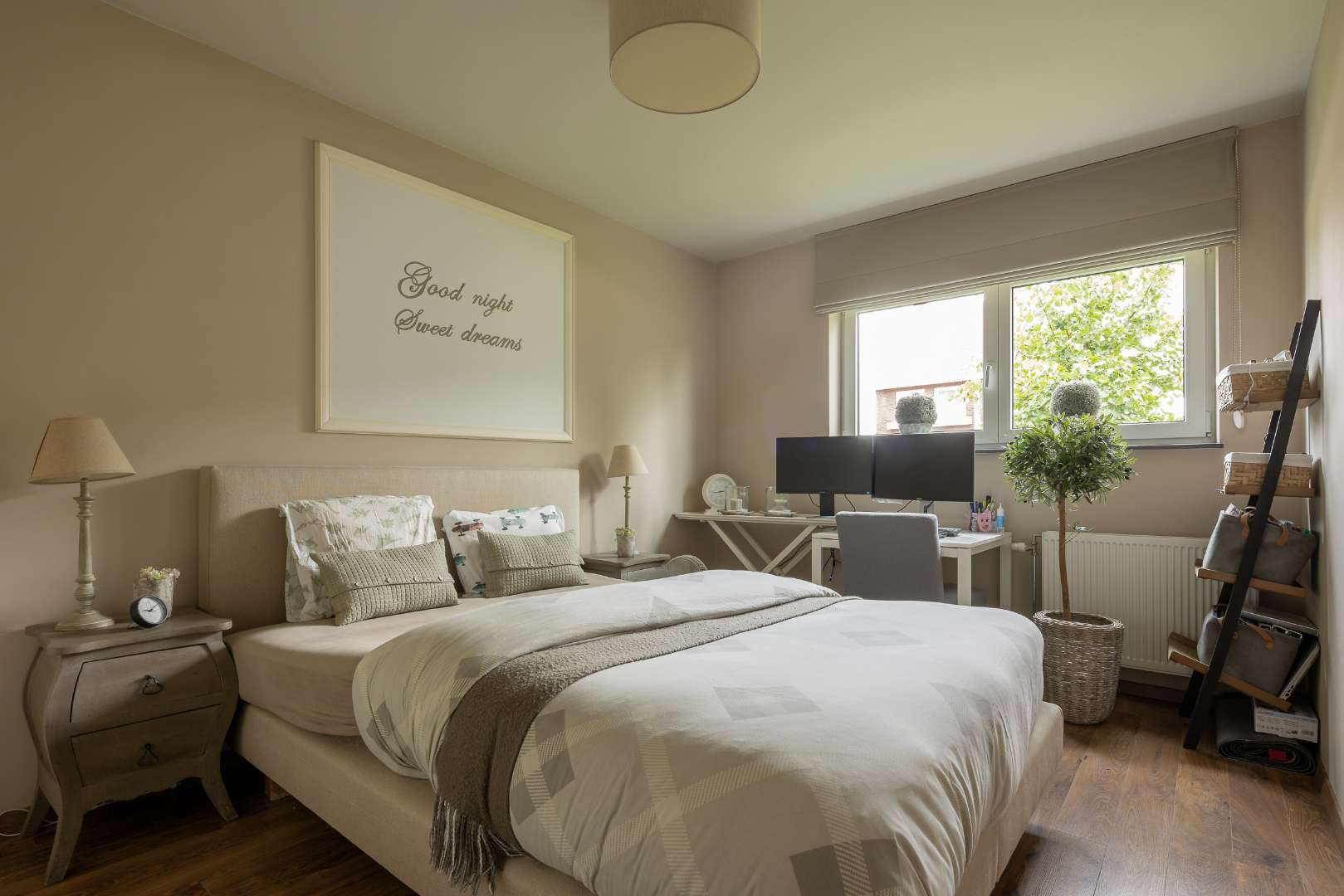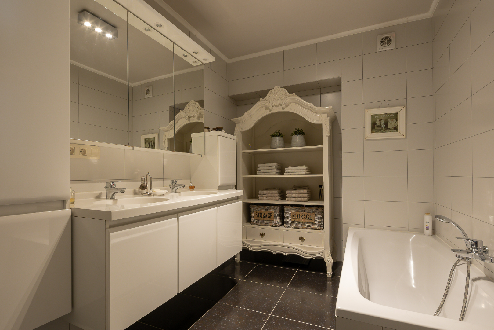Het appartement heeft een mooi verzorgde badkamer een bad en dubbele lavabo, alsook apart toilet. Verder zijn er twee slaapkamers en beschikt het appartement ook over een parkeerplaats en berging in de parkeerkelder. Daarnaast zijn er gelijkvloers ook nog autostaanplaatsen voorzien.