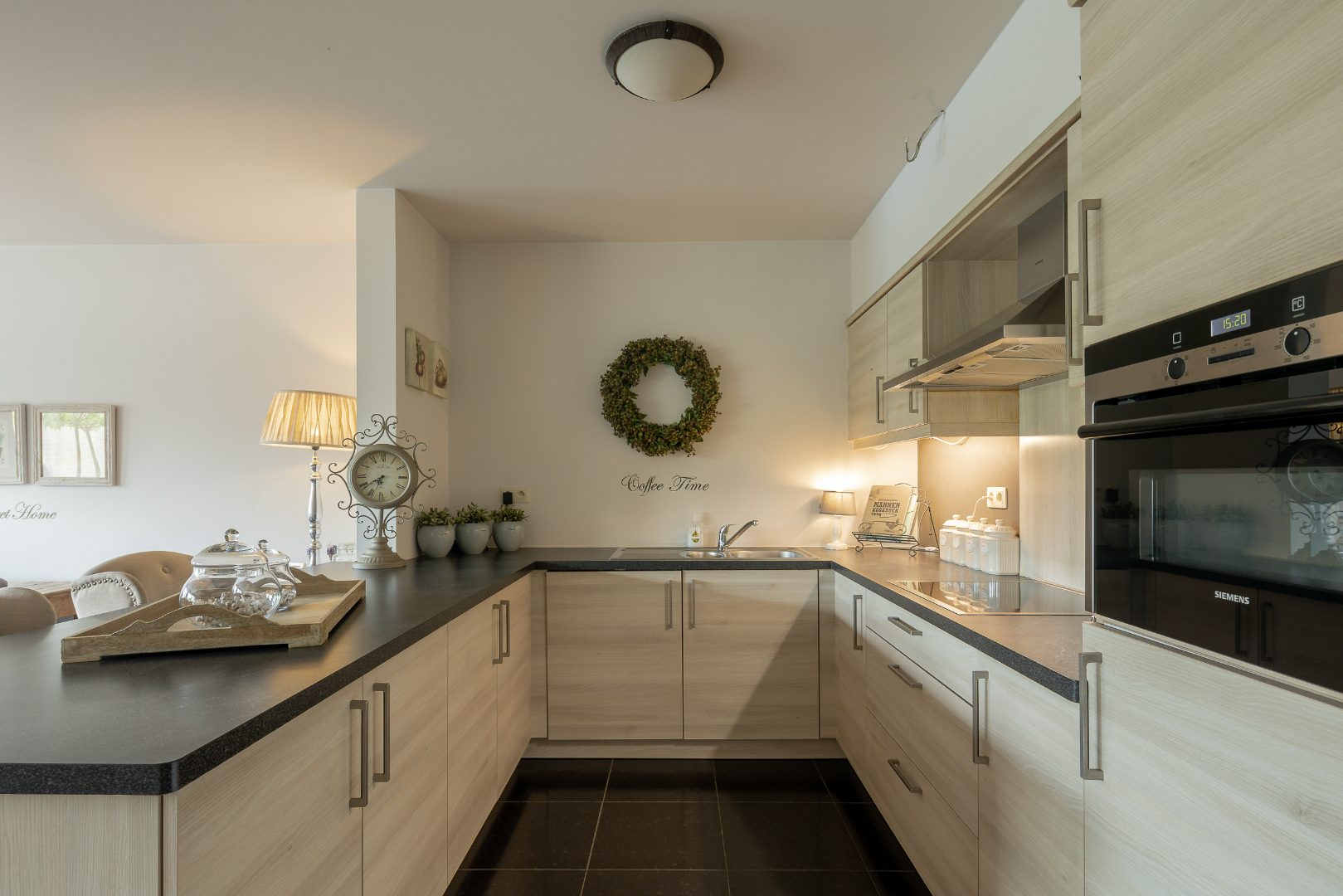 Dit appartement van 2009 is volledig instapklaar. Met een EPC van 161 en een conform keuringsattest voor de elektriciteit, hoeft u geen werken meer uit te voeren. Het appartement heeft een open leefruimte en keuken, met veel lichtinval en een aangename aansluiting met de tuin. De keuken is uitgerust met een 4-pits elektrisch vuur, een combi (microgolf)oven, vaatwasser, anderhalve spoelbak, koelkast alsook lades met soft-close. Verder is er nog een aangename bergruimte bij de keuken voor een eventuele diepvriezer, voorraad, wasmachine en/of droogkast.