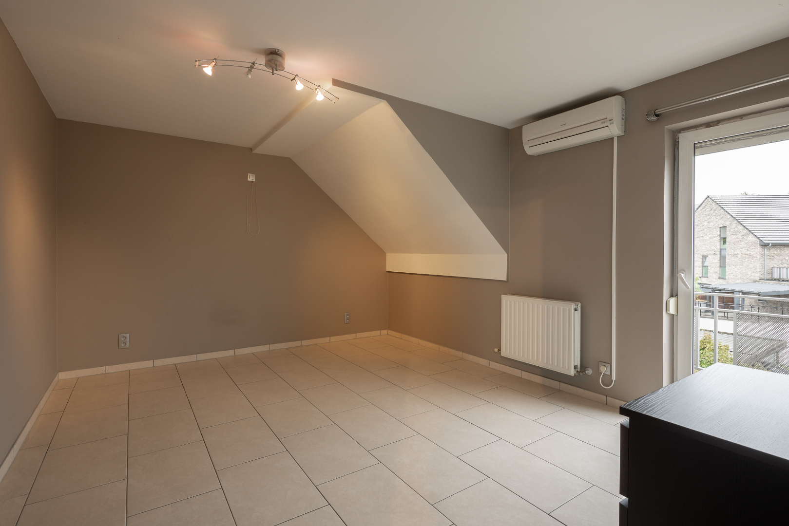Vanuit de leefruimte heb je verbinding met de slaapkamer dat voorzien is van een airco-systeem.
