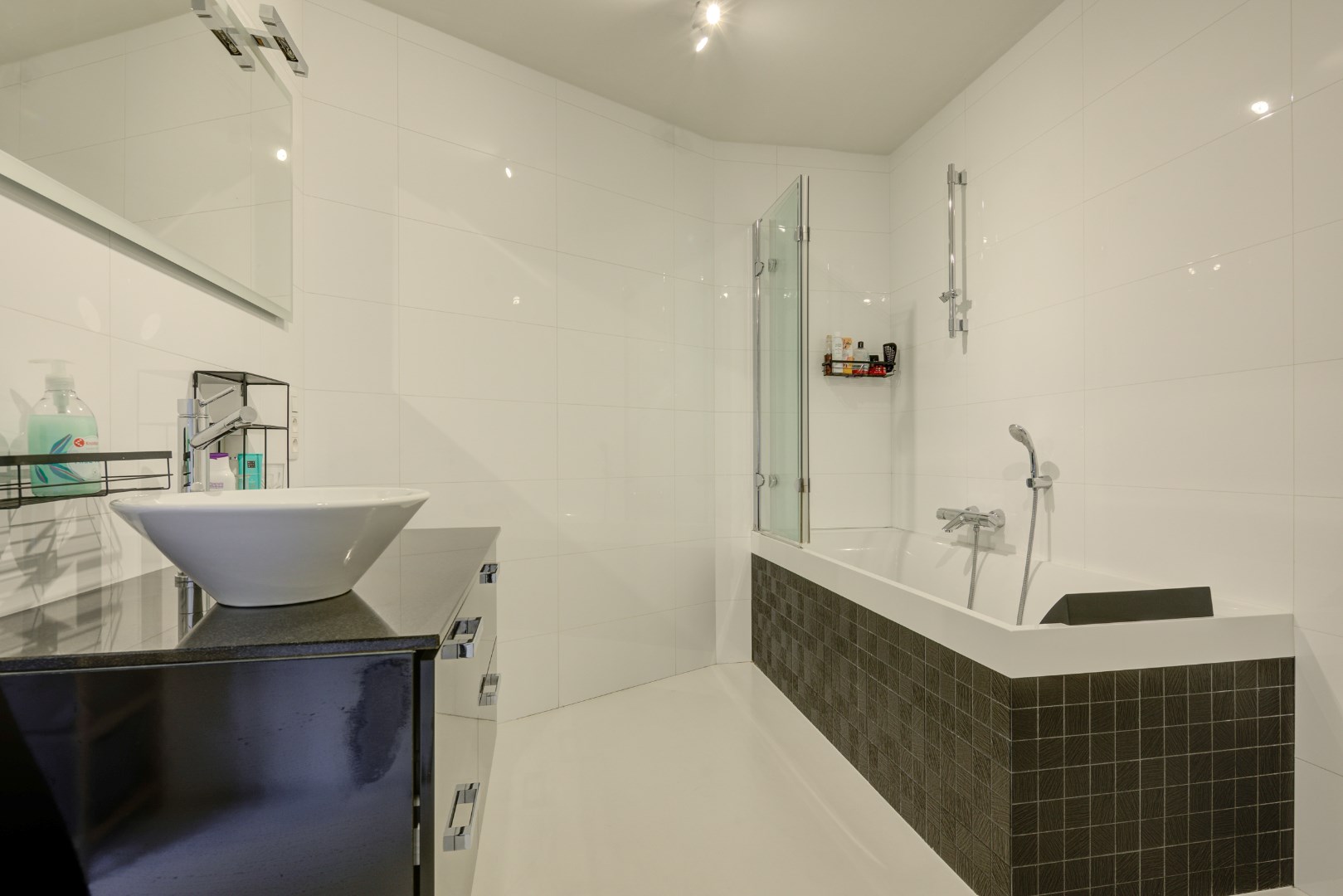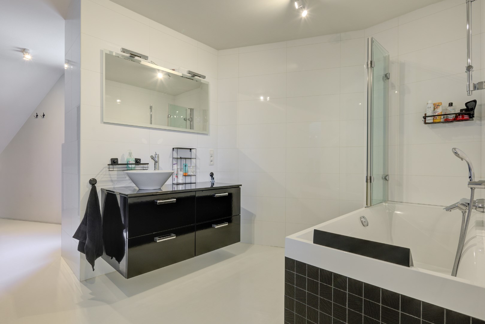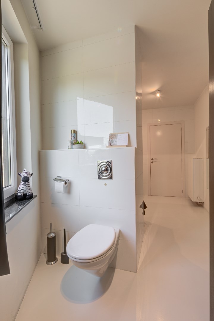 Verder vinden we nog een aangenaam terras op de zuidwest kant met een prachtig zicht. Ook vinden we op dit verdiep een enorm grote badkamer met bad en douchecombinatie, een tweede toilet en wastafel.