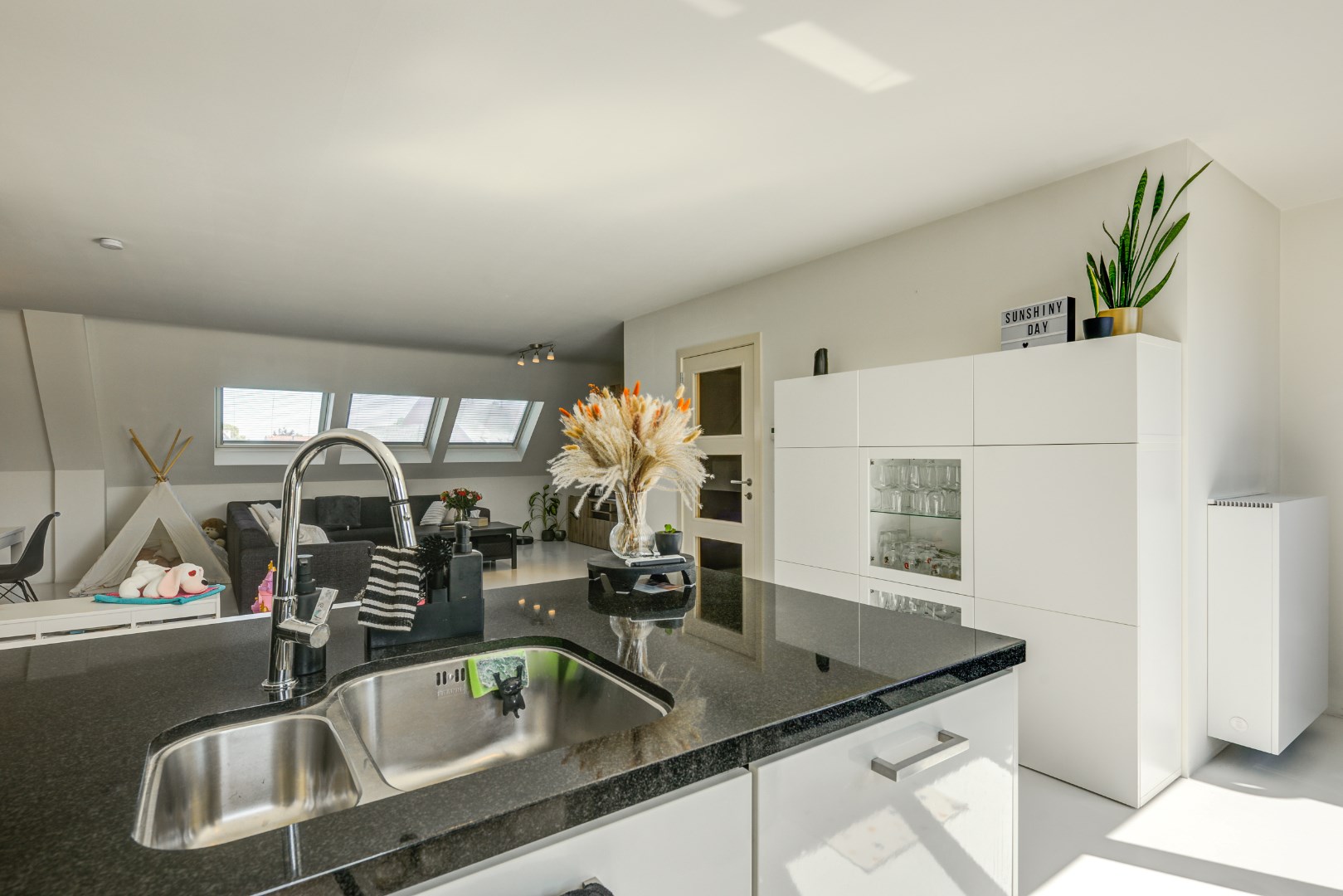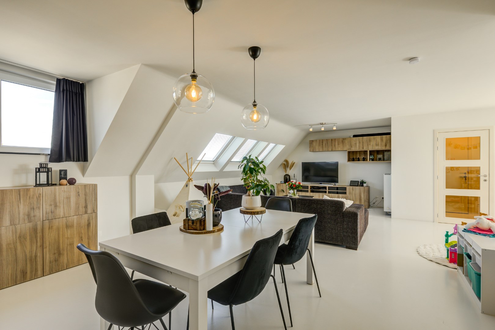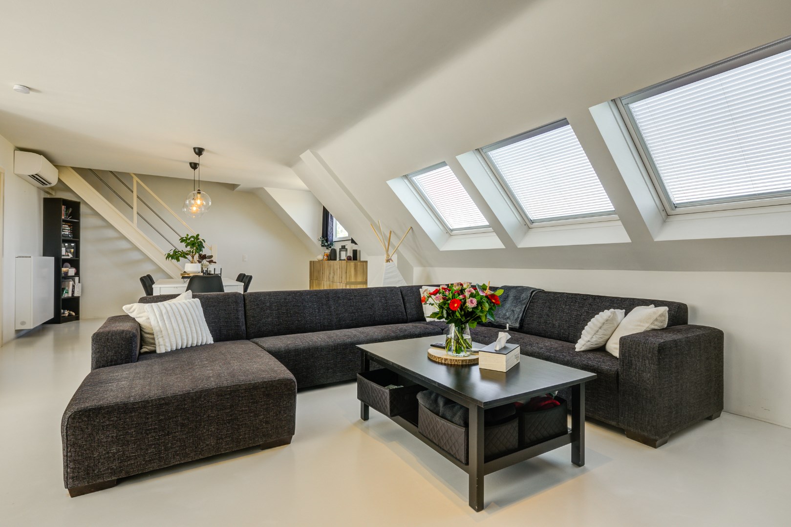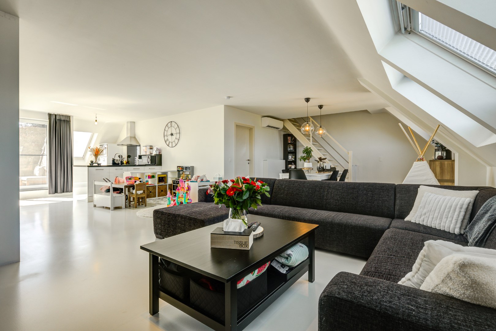 Dit duplexappartement, bereikbaar met trap en LIFT, beschikt in totaal over maar liefst 134m² woonoppervlakte. Vanuit de inkomhal is er toegang tot het aparte toilet en de zeer ruime en open leefruimte. In totaal hebben we hier maar liefst +/- 70m² woonruimte met open keuken. Het strakke interieur met een mooie epoxyvloer, laat zien hoe netjes dit appartement wordt onderhouden.