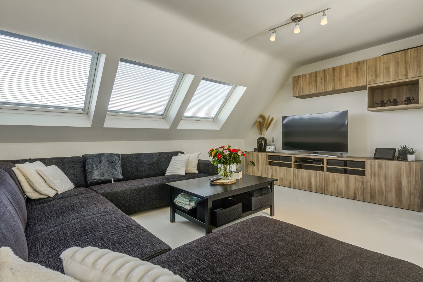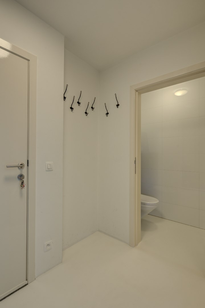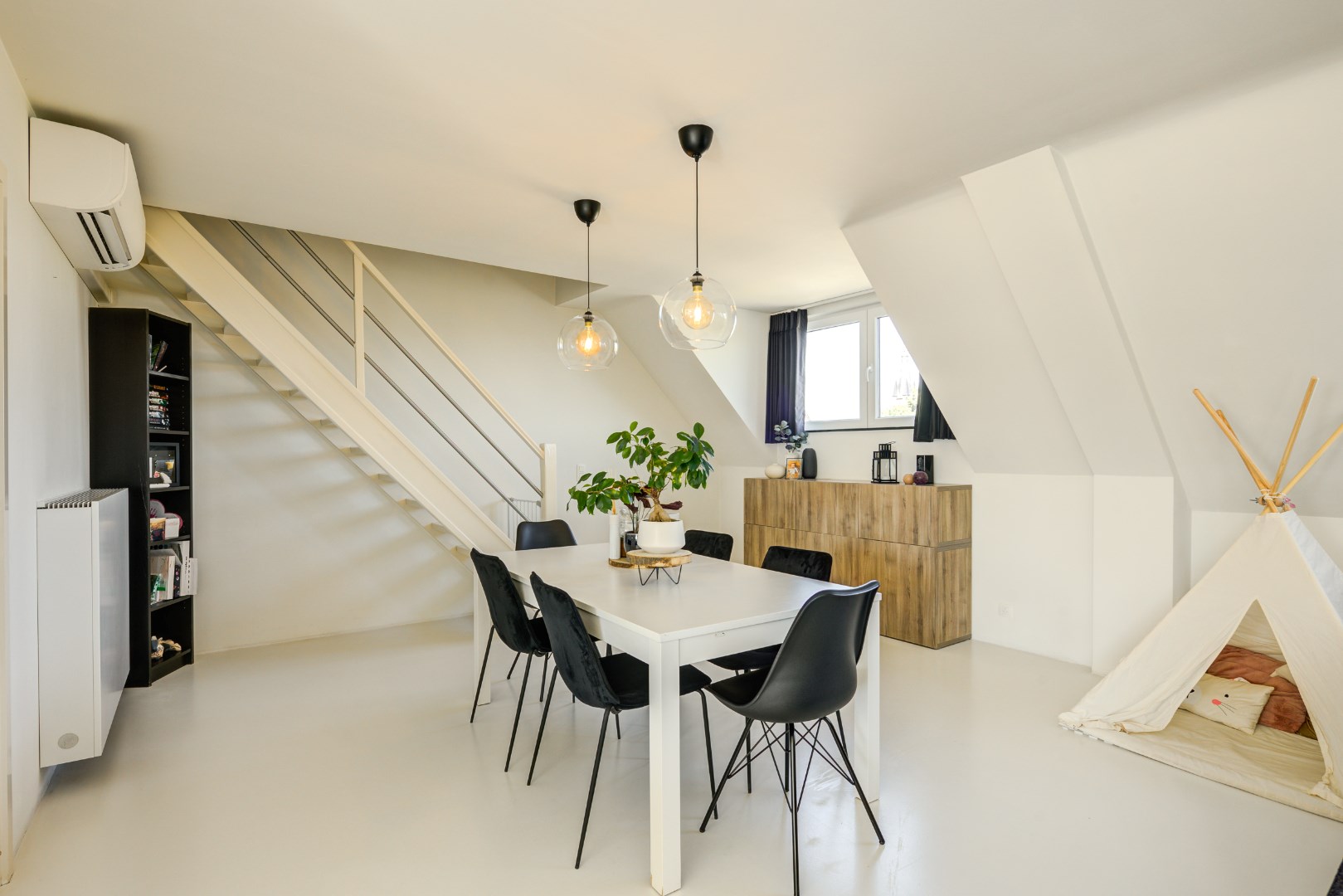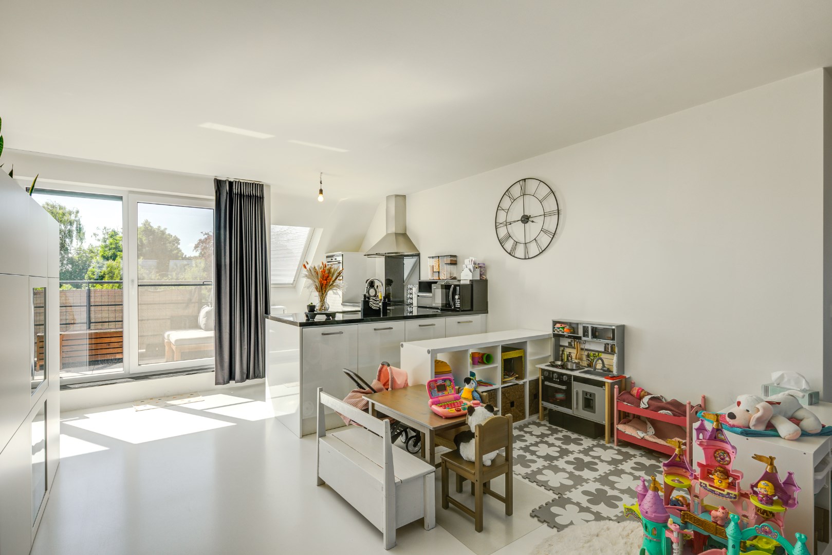 Dit duplexappartement, bereikbaar met trap en LIFT, beschikt in totaal over maar liefst 134m² woonoppervlakte. Vanuit de inkomhal is er toegang tot het aparte toilet en de zeer ruime en open leefruimte. In totaal hebben we hier maar liefst +/- 70m² woonruimte met open keuken. Het strakke interieur met een mooie epoxyvloer, laat zien hoe netjes dit appartement wordt onderhouden.