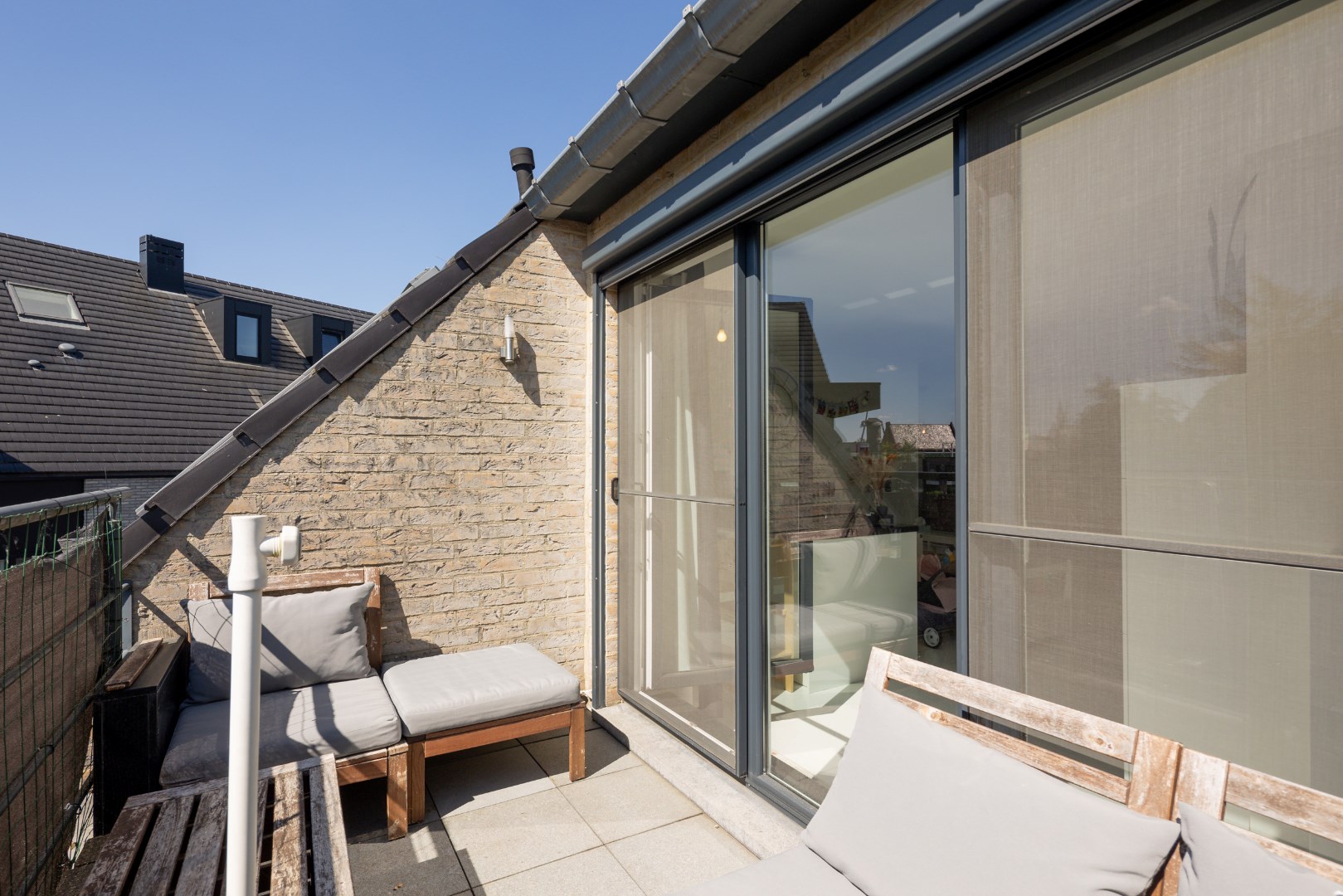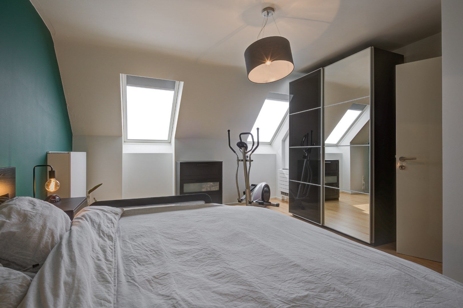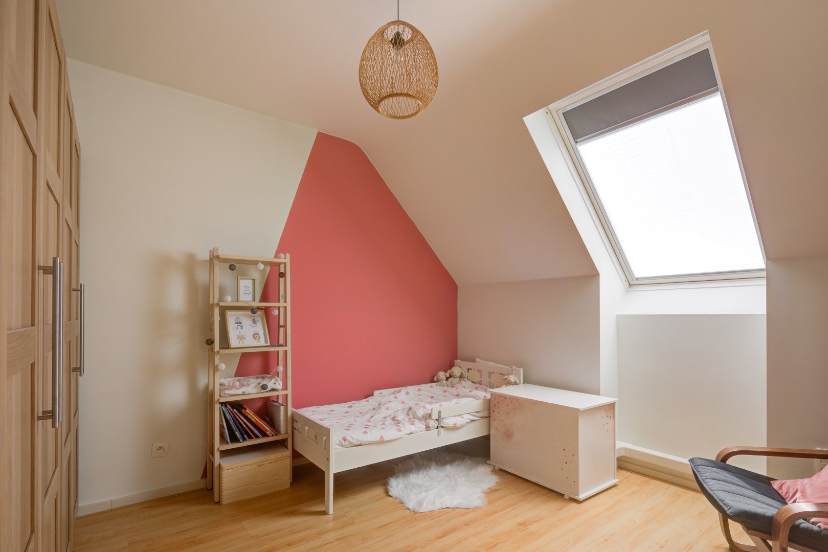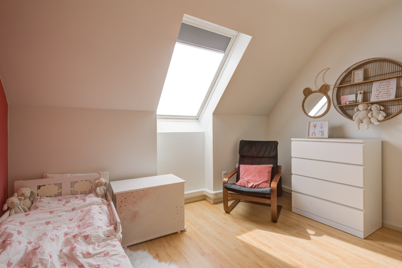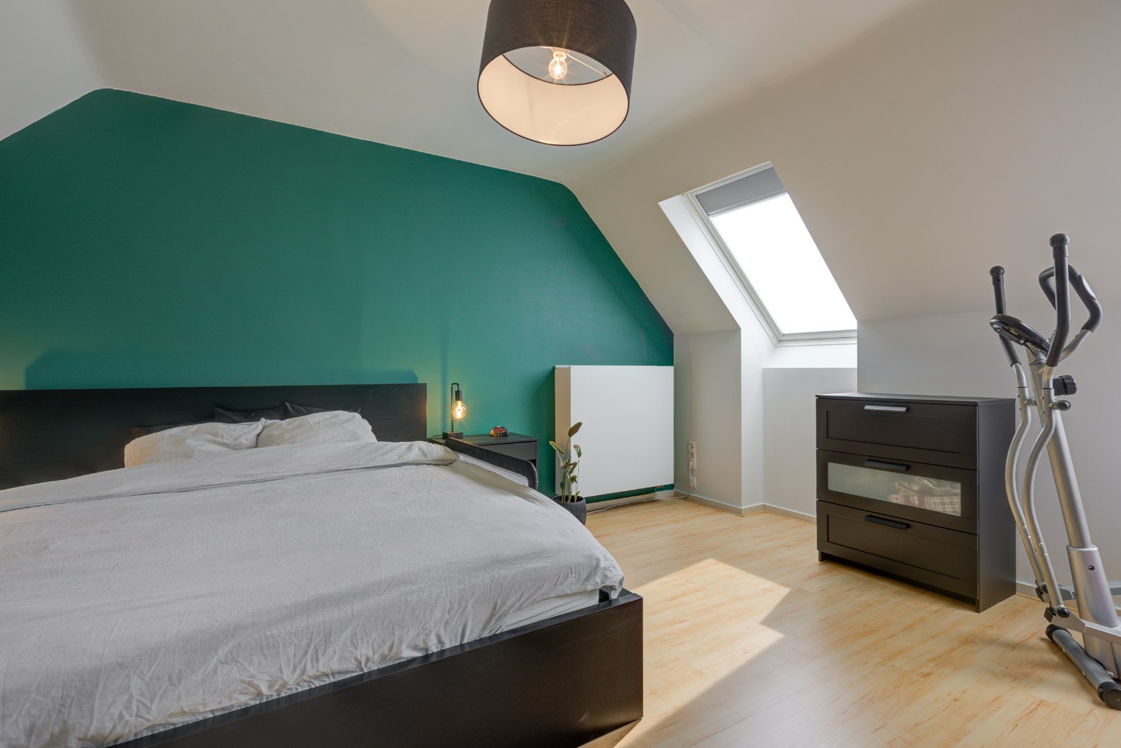 Op verdiep vinden we vervolgens een ruime overloop en twee slaapkamers. De 'kleine' slaapkamer is 12m² groot en de masterbedroom ruim 21m².