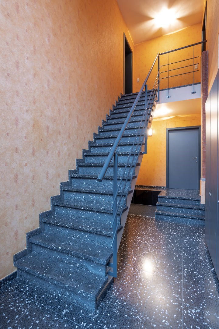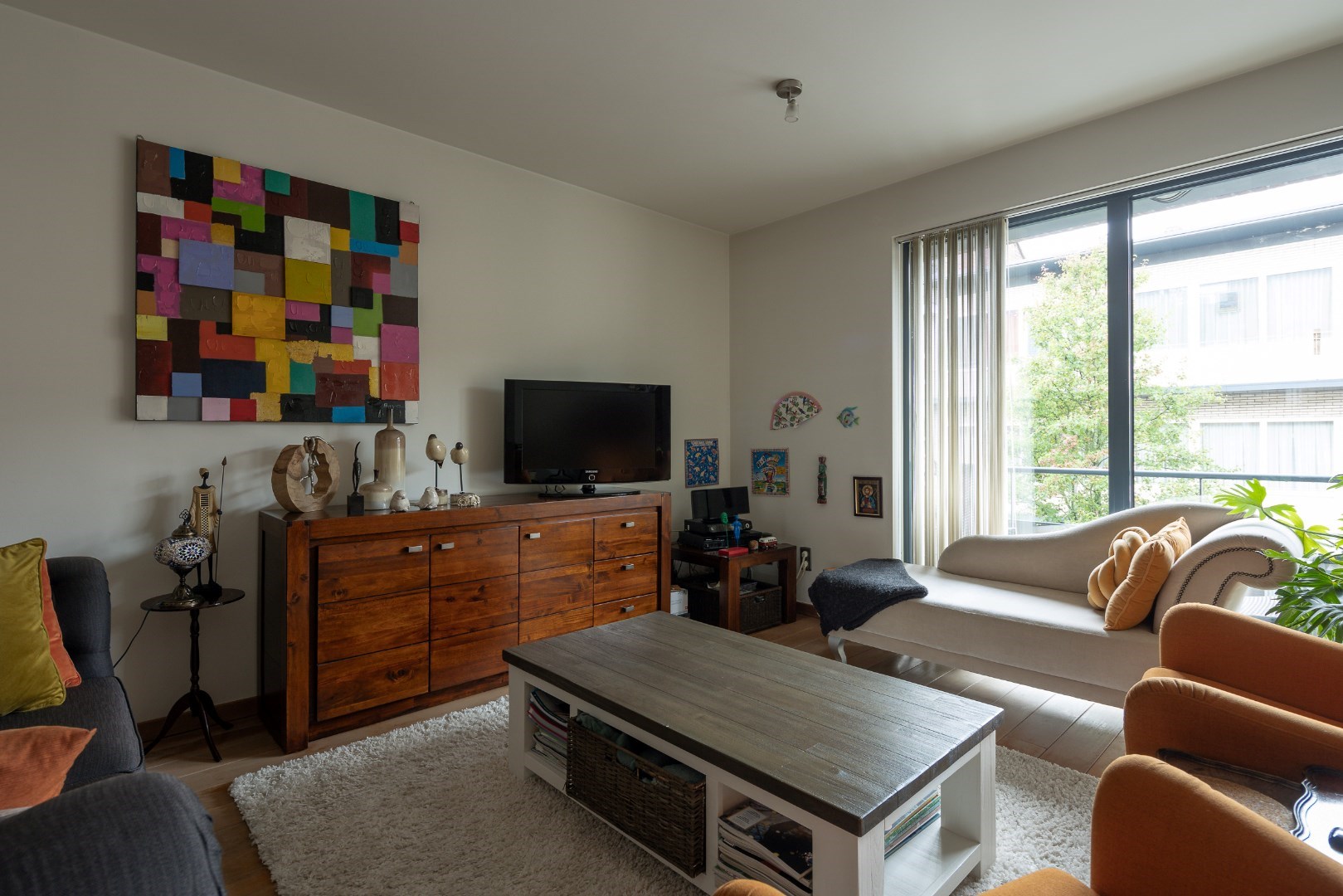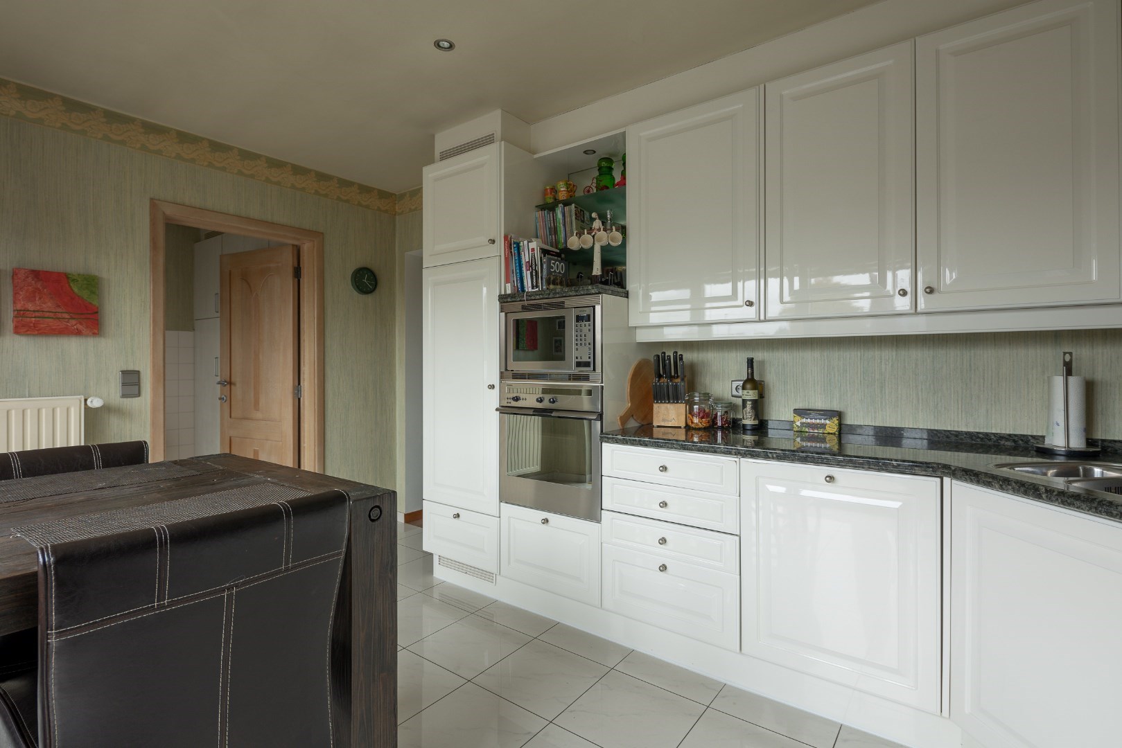 Het appartement, goed voor 170m² woonoppervlakte is voorzien van kwalitatieve materialen. Zo is er gekozen voor parket in de ruime en lichtrijke leefruimte. Grenzend aan de leefruimte is een terras aan de voorzijde met bergruimte. Vervolgens grenst aan de andere kant de keuken, uitgerust met alle benodigdheden zoals vuur, microgolf, oven, vaatwasser en koelkast. Deze keuken grenst aan een zeer ruim terras waar je geen inkijk hebt van andere appartementen. Verder ligt hier ook een handige bergruimte met inbouwkast en diepvries. Vervolgens is er ook nog een royale inkomhal met toilet.