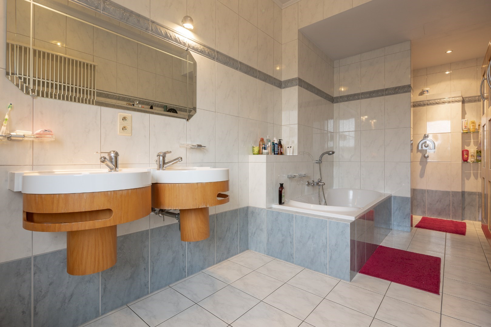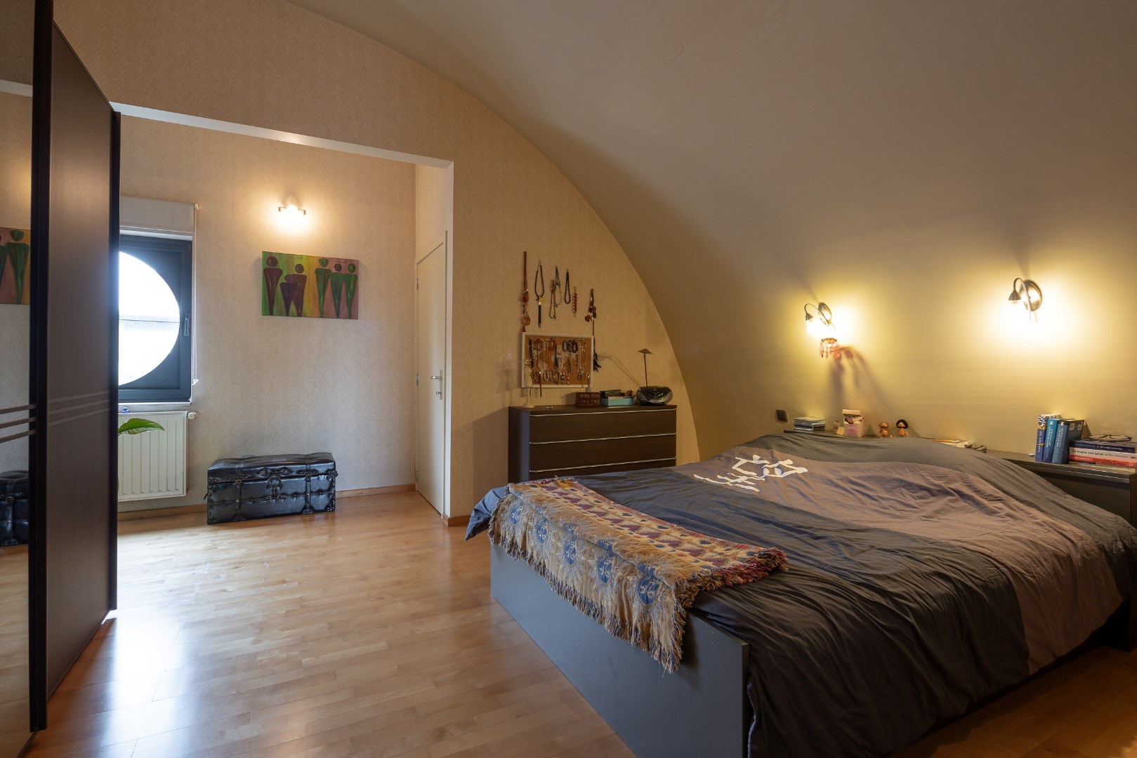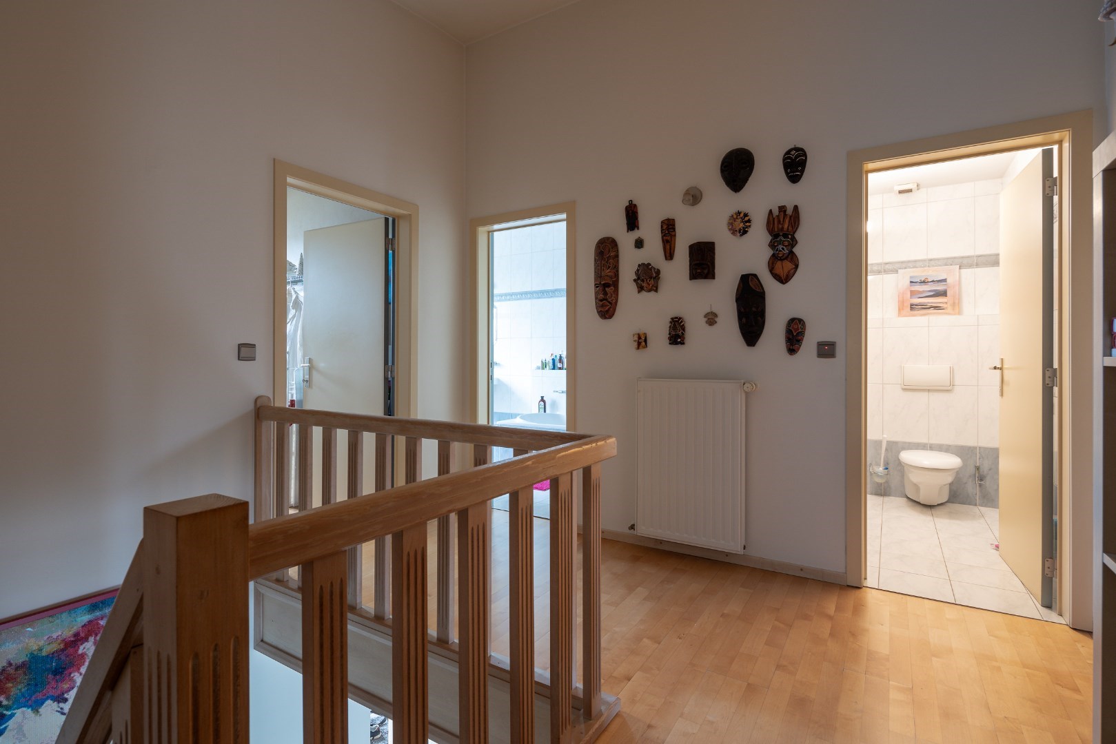 Vanuit de leefruimte kunnen we de prachtige trap nemen om naar het verdiep te gaan. Hier is opnieuw een aparte toilet, maar ook de sanitaire voorzieningen zijn hier gelegen. Er is een ruime badkamer met zowel douche als bad, alsook zijn er twee lavabo's aanwezig. Verder is er een gigantische masterbedroom met dressingruimte. Om het plaatje compleet te maken is er ook nog een tweede slaapkamer.