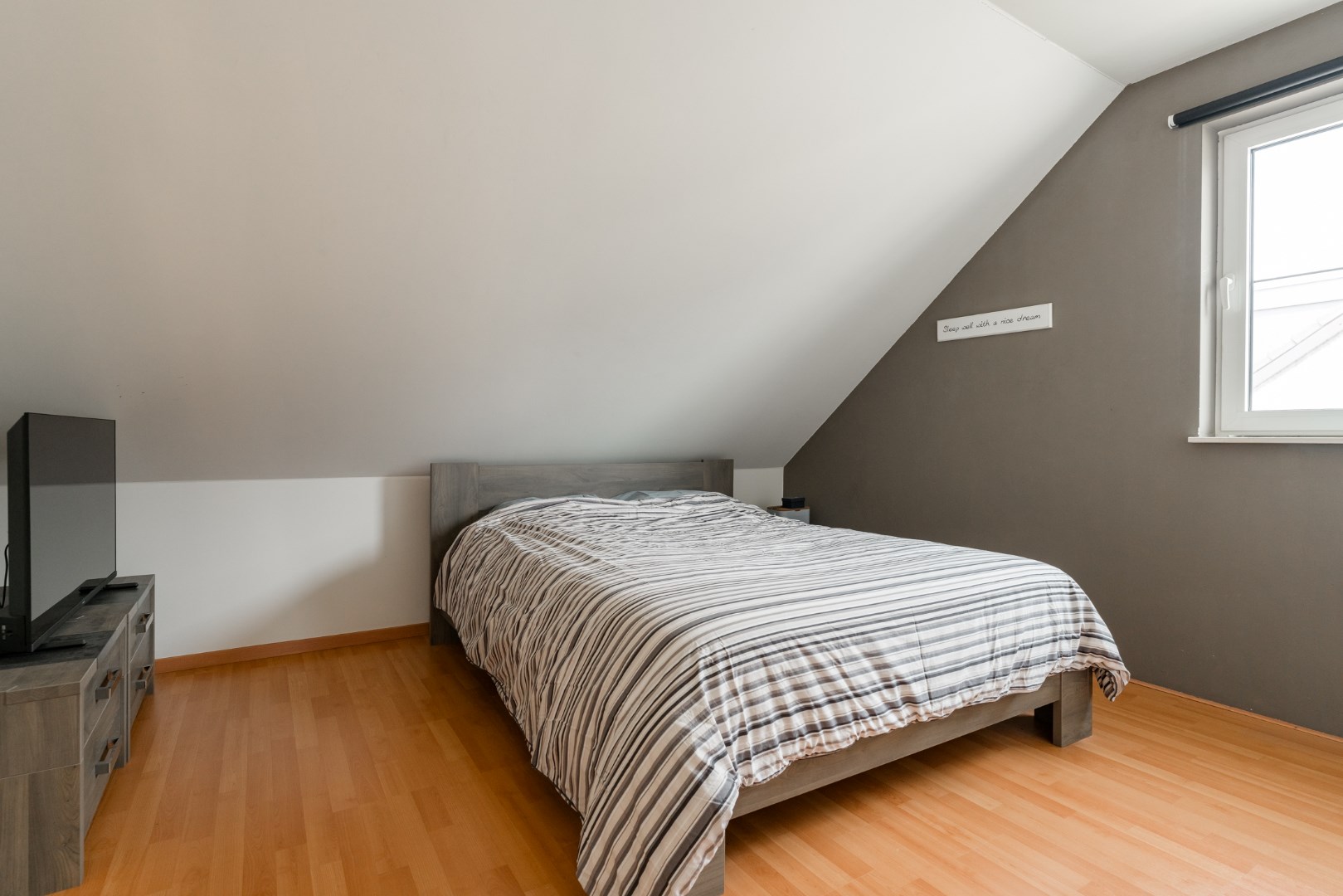 Verder vinden we nog een extra bergruimte en toilet op dit verdiep. Wanneer we de trap naar boven nemen, vinden we vervolgens drie mooie slaapkamers terug, waarbij één met aanpalende dressing. Verder is er ook een badkamer met zowel bad als douche en ook een apart toilet. Indien u toch nog meer bergruimte nodig hebt, kunnen er diverse materialen gestockeerd worden op de ruime geïsoleerde zolder.