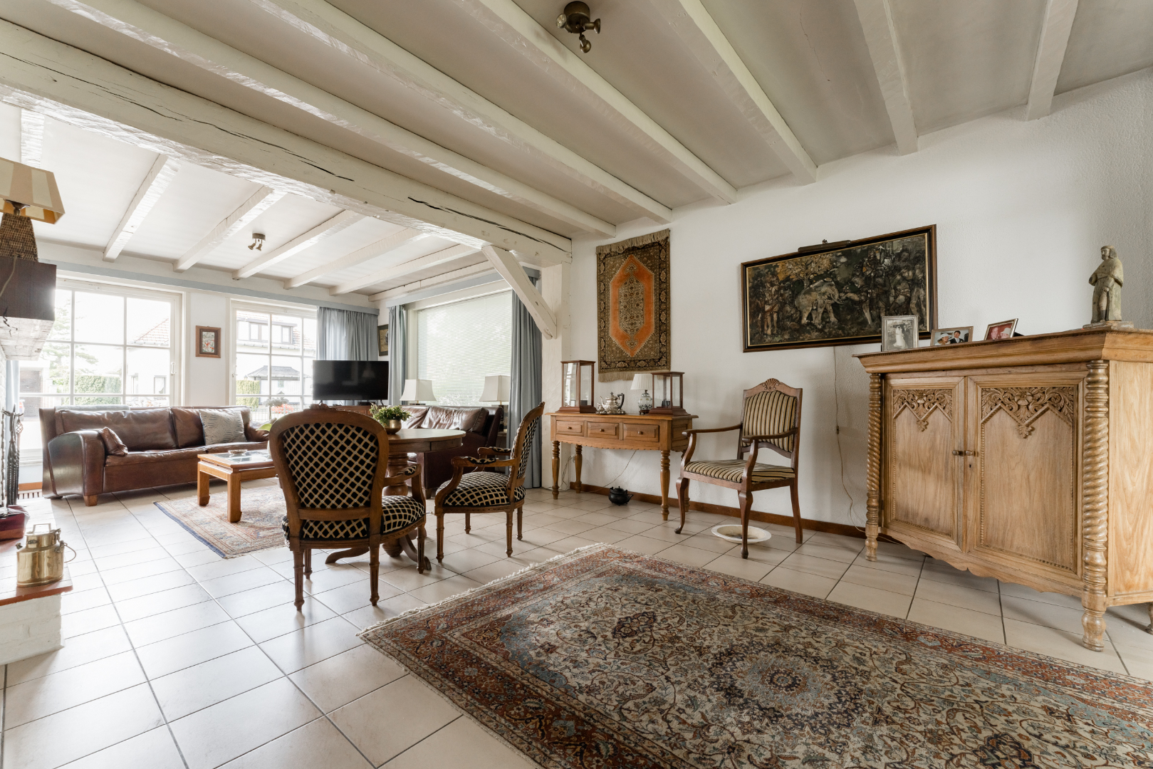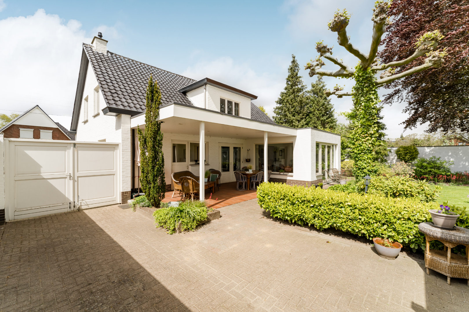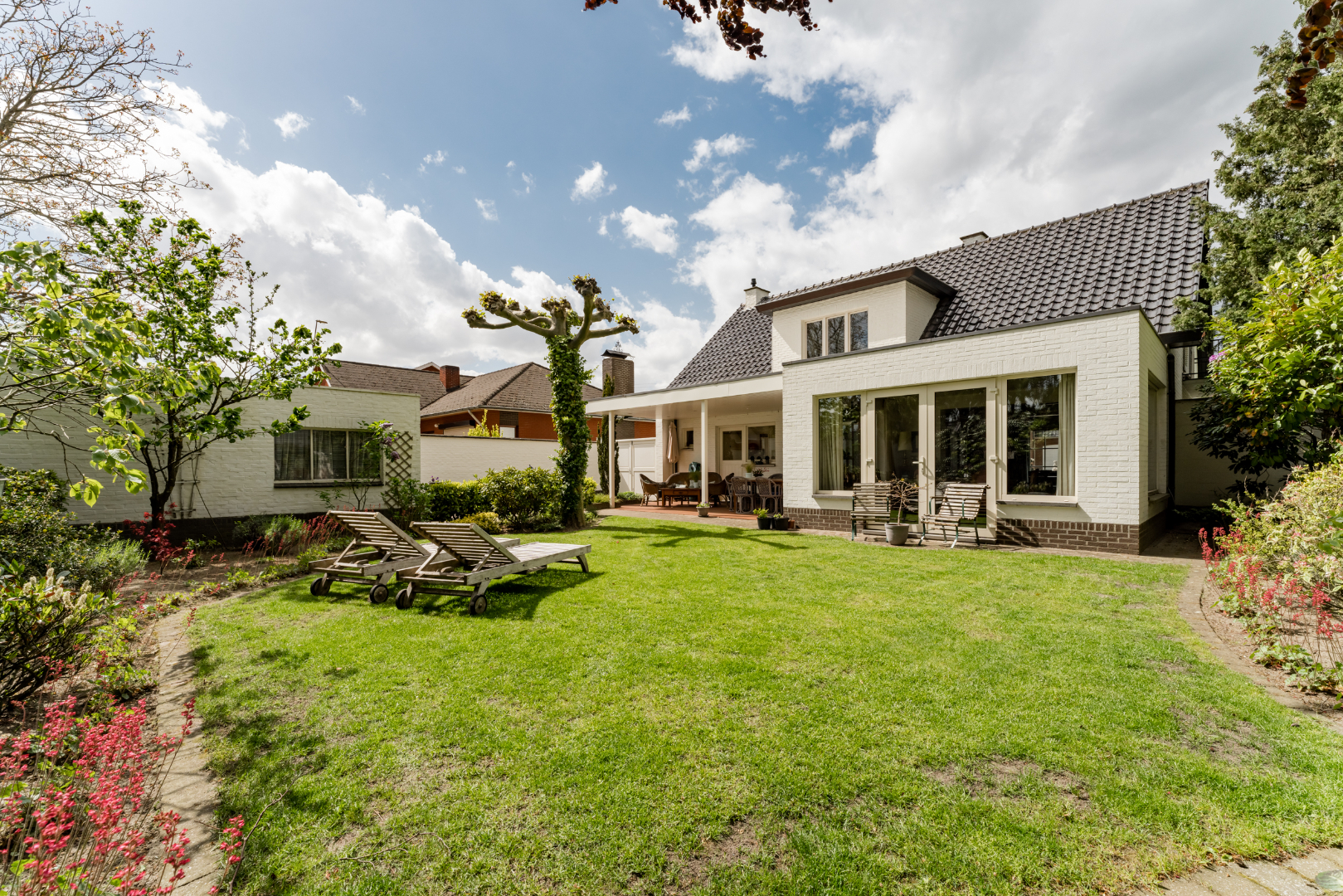 Deze gezellige ruime eengezinswoning ligt op enkele minuten wandelen van het centrum van Hamont waar zich ook scholen, winkels, openbaar vervoer e.d. bevinden. Op het gelijkvloers bevinden zich een ruime inkomhal met rechts een kantoor/ speelruimte en links de woonkamer met openhaard en een serre met zicht op de mooie en goed onderhouden tuin. Ook op de begane grond een comfortabele keuken die uitgeeft op het gezellig overdekt terras en een grote berging met een apart toilet. Op de eerste verdieping bevinden zich de badkamer met ligbad en douche, 2 grote en 1 iets kleinere slaapkamer en een volledig afgetimmerde zolderruimte. Verder is er nog een ruime garage en is de woning volledig ommuurd. Voor meer informatie contacteer Vastgoed Fransen & Co 0032(0)11/64.55.00