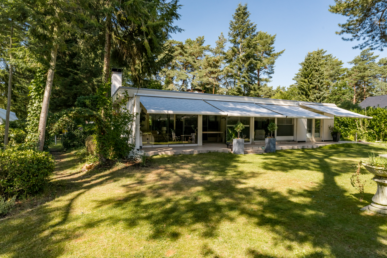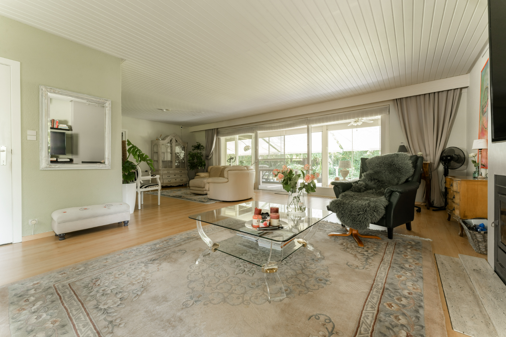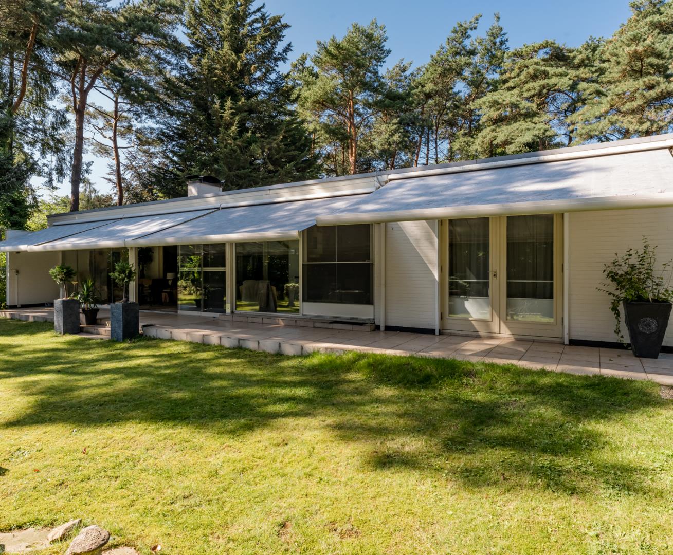 - Grote veranda met glazen schuiframen (van vloer tot plafond) met aansluitend op groot terras.