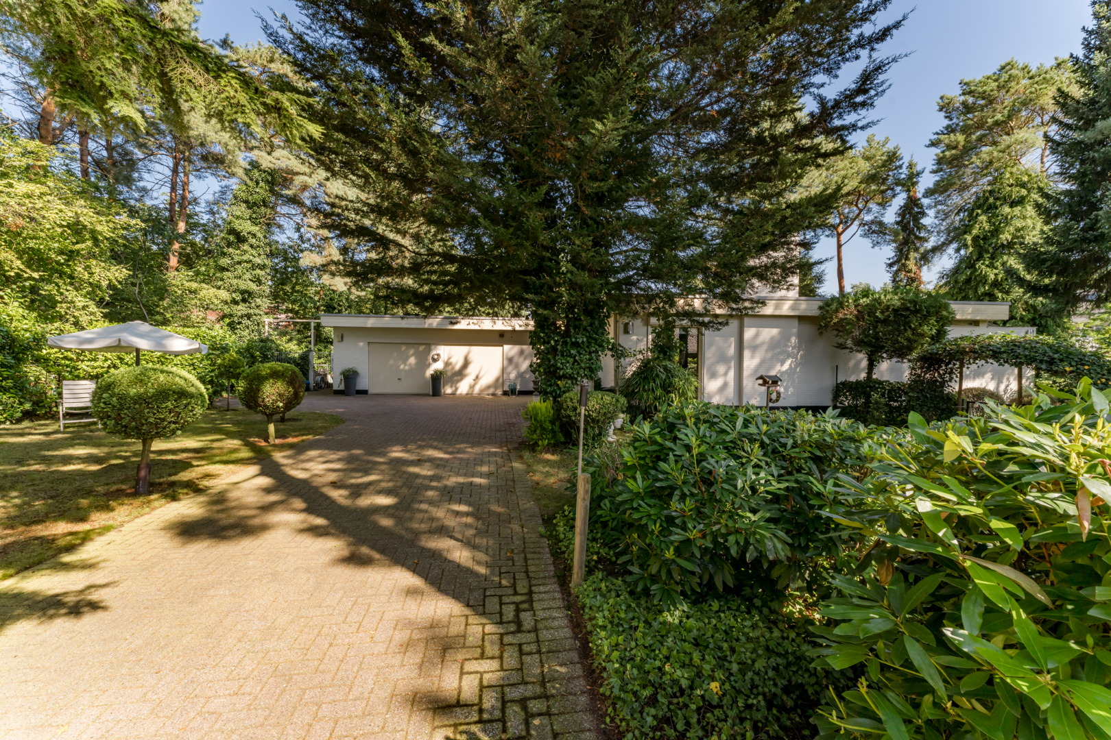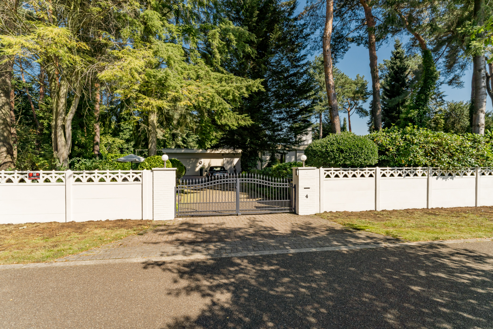 Het perceel is rondom volledig omheind. Er is een brede lange oprit met ruime elektrische toegangspoorten waarbij de beide stenen pilaren zijn voorzien van verlichtingselementen. Voorts zijn er vier extra verlichtingselementen verspreid over de tuin. Alle tuinverlichting gaat automatisch aan bij aanvang duisternis en uit bij beginnend daglicht. Aan het huis zelf zijn rondom verlichtingselementen die naar wens ingeschakeld kunnen worden.