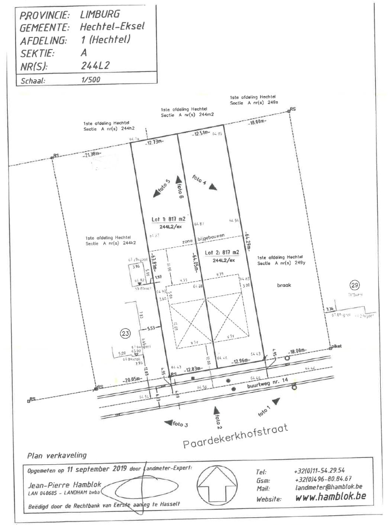 Het perceel heeft een breedte van 12, 83m en is 64,93m diep.