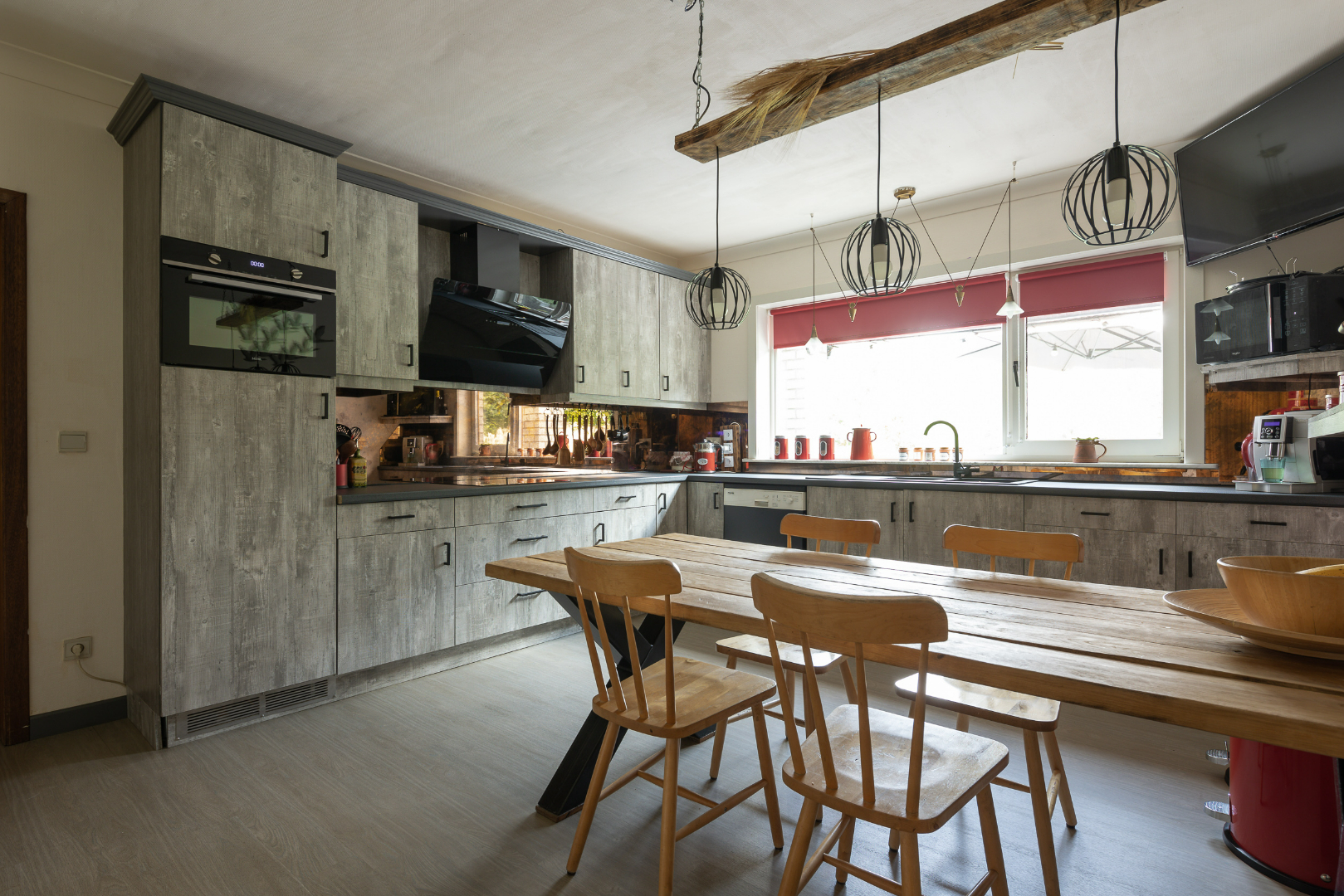 De woning beschikt over een ruime keuken die vorig jaar vernieuwd werd. Hierbij is er een vaatwasser, combi-oven, inductievuur met afzuiging en dubbele spoelbak voorzien.