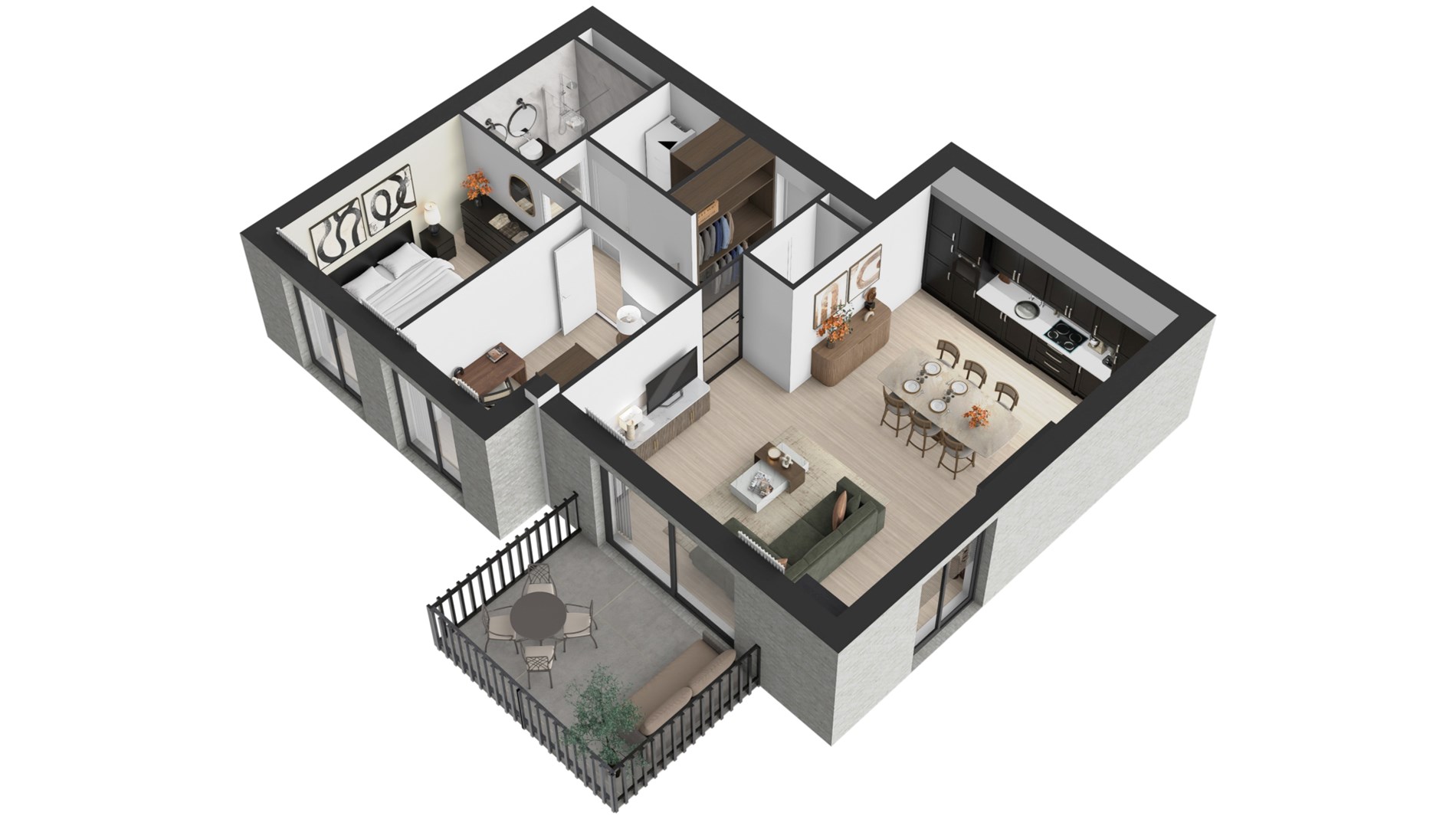 * Alle appartementen zijn voorzien van vloerverwarming en worden energie-efficiënt passief gekoeld gedurende warmere periodes. Samen met de groendaken en een zomerbypass op de ventilatiesystemen type D, wordt oververhitting tegengegaan.