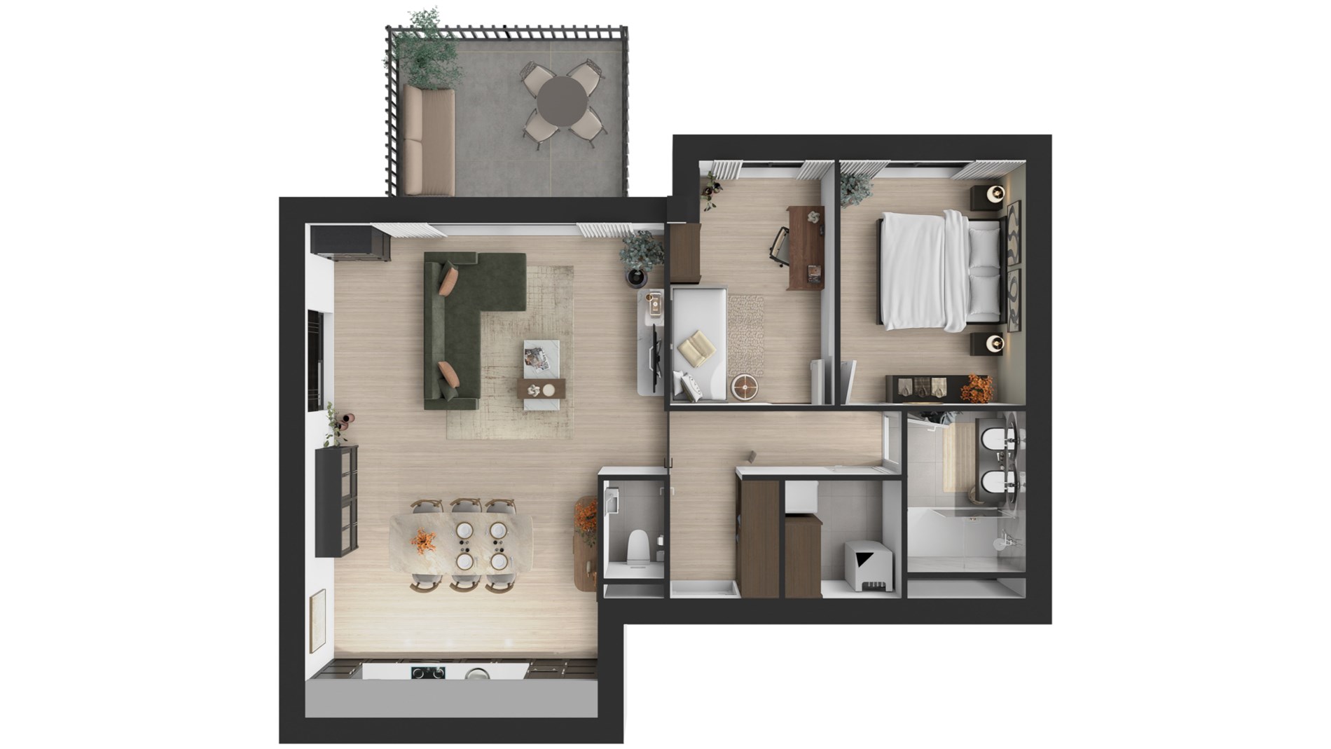 * Een volledig aangelegde gemeenschappelijke tuin, uitgerust met een retentie- en irrigatiesysteem, samen met de groendaken, zorgt voor een duurzaam waterbeheer en een aangenaam microklimaat.