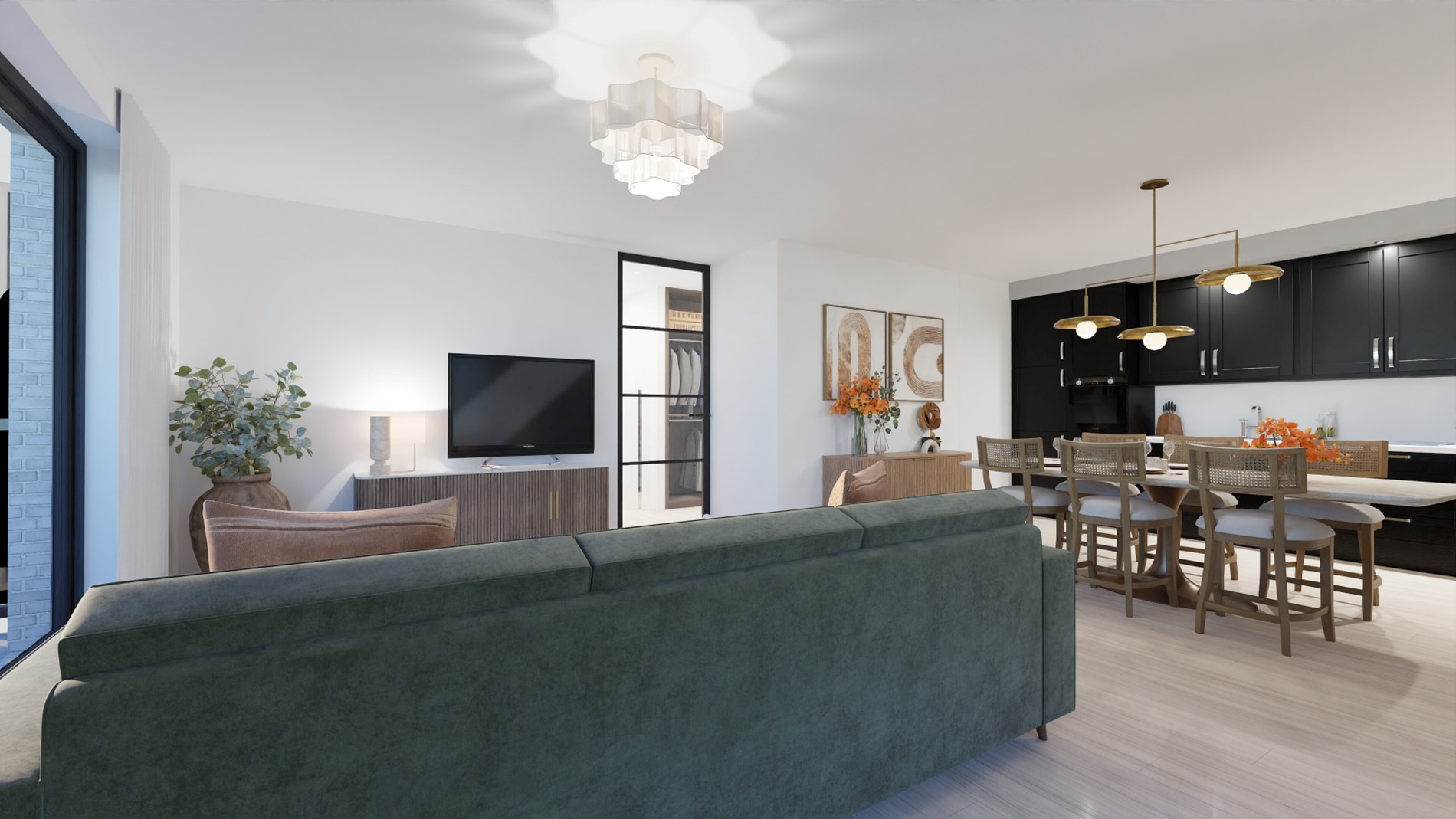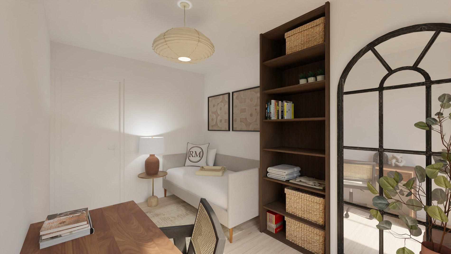 De leefruimte is mooi open, voorzien van een keuken met eiland. Verder vinden we nog een badkamer, berging en apart toilet terug. In de inkomhal is er een nis voorzien als vestiaire en een glazen deur tussen hal en leefruimte. Verder vinden we nog twee slaapkamers terug.