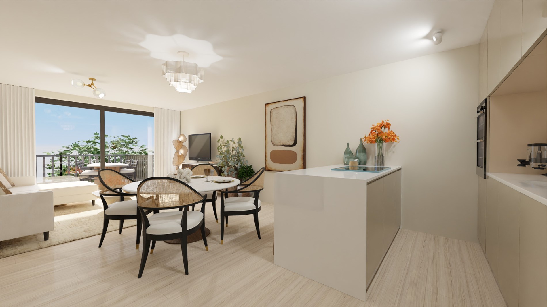 * Alle appartementen zijn voorzien van vloerverwarming en worden energie-efficiënt passief gekoeld gedurende warmere periodes. Samen met de groendaken en een zomerbypass op de ventilatiesystemen type D, wordt oververhitting tegengegaan.