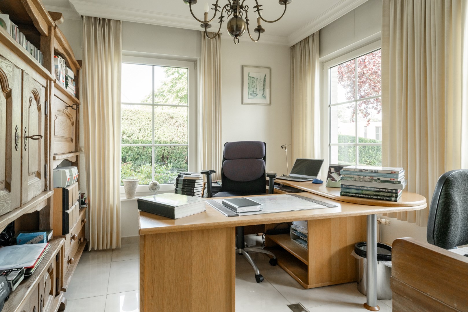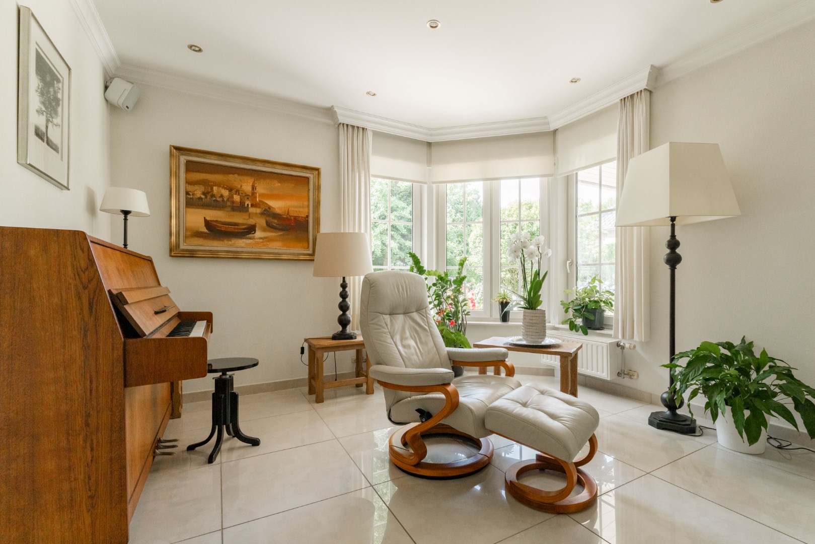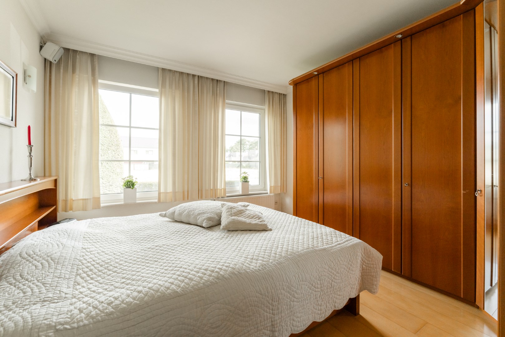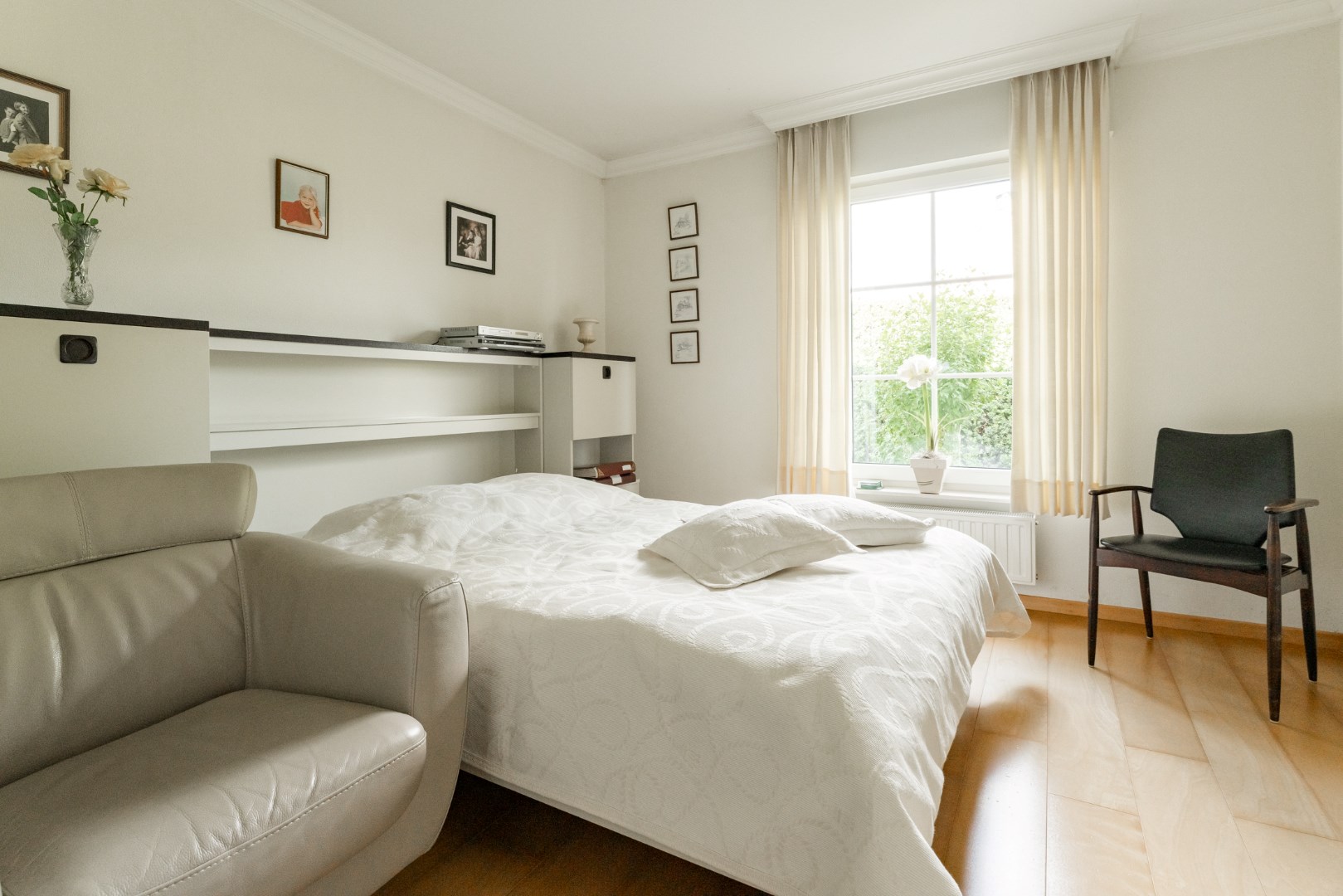 Verder zijn er drie slaapkamers (voorzien van elektrische rolluiken), een badkamer met bad, douche, toilet en dubbel wasmeubel.
