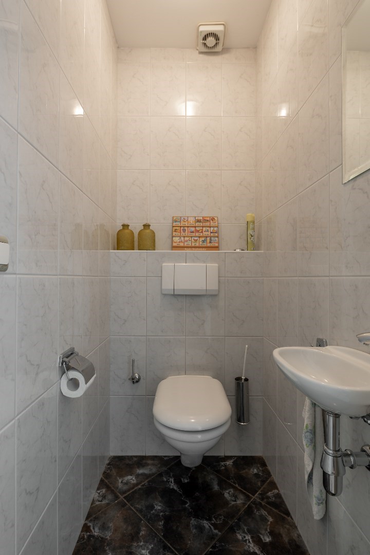 Ook is er gelijkvloers een inpandige garage, een apart toilet en een bergruimte.