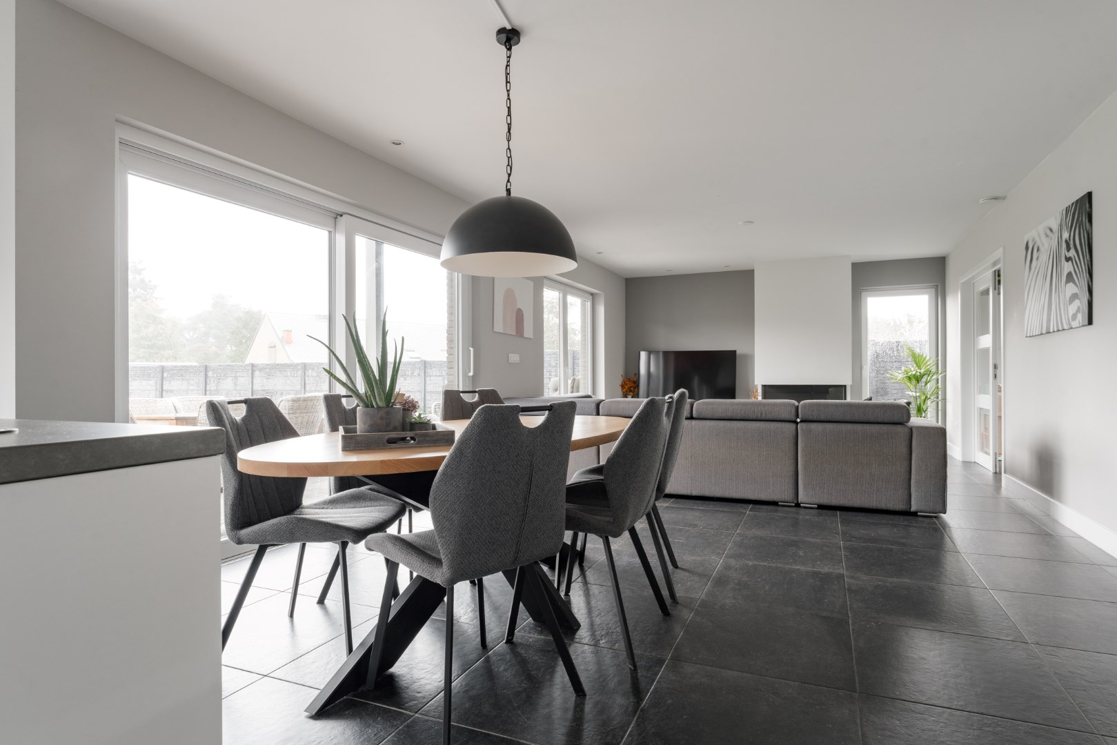 - Grote leefruimte (gashaard) met open keuken volledig in contact met de tuin