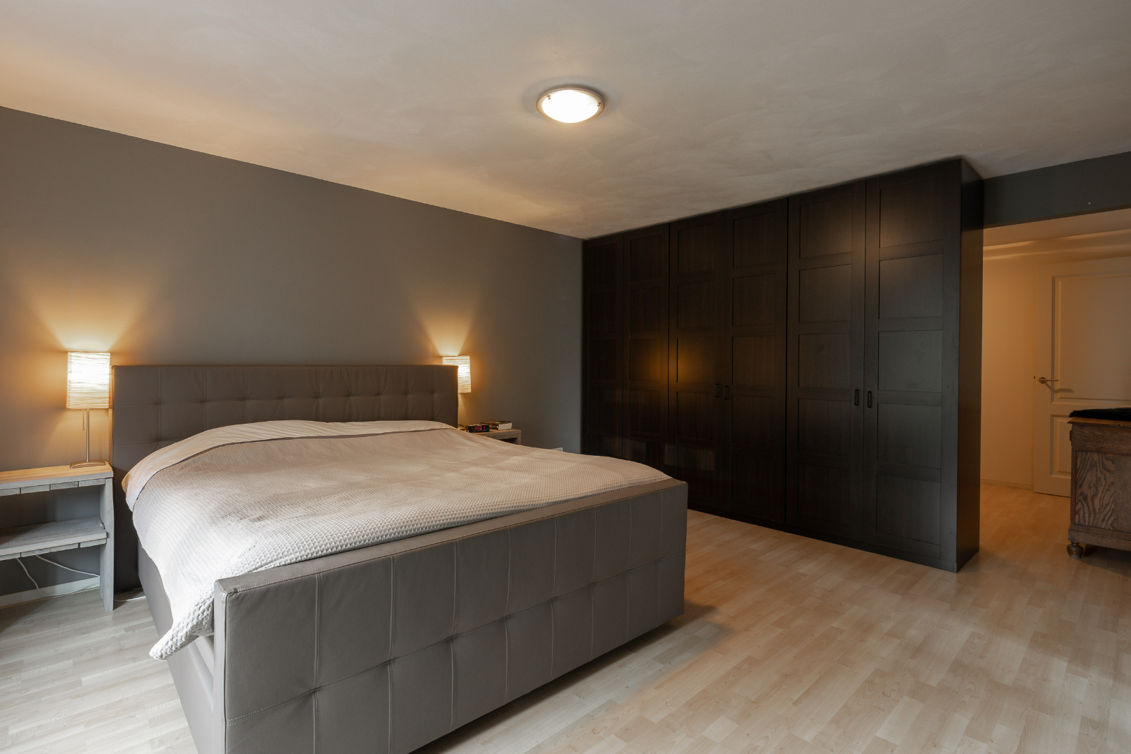 Op verdiep zijn er 3 à 4 slaapkamers voorzien in totaal. De master bedroom geeft toegang tot de kleinste slaapkamer die eventueel ook als dressing gebruikt kan worden. Ook kan u vanuit de master bedroom rechtstreeks naar de badkamer. De badkamer is voorzien van een ruim bad, douche, badmeubel en toilet. Verder liggen er op dit verdiep nog twee ruime slaapkamers.