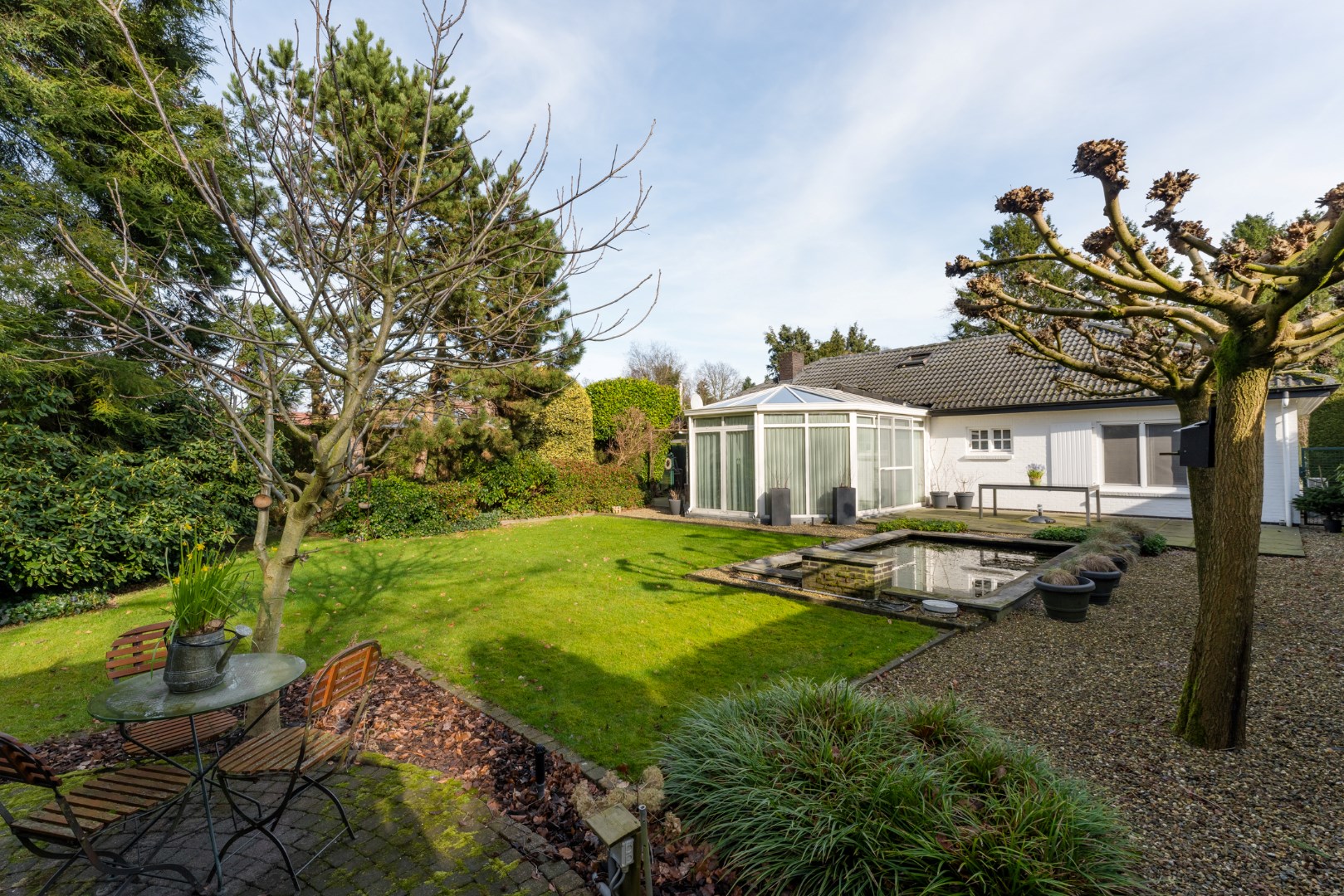 De woning zelf ligt op een perceel van 1.003m². Er is een mooie aangelegde tuin voorzien met sproei-installatie, een prachtige vijver, carport en tuinhuis. Dit alles op een zeer mooie groene locatie.
