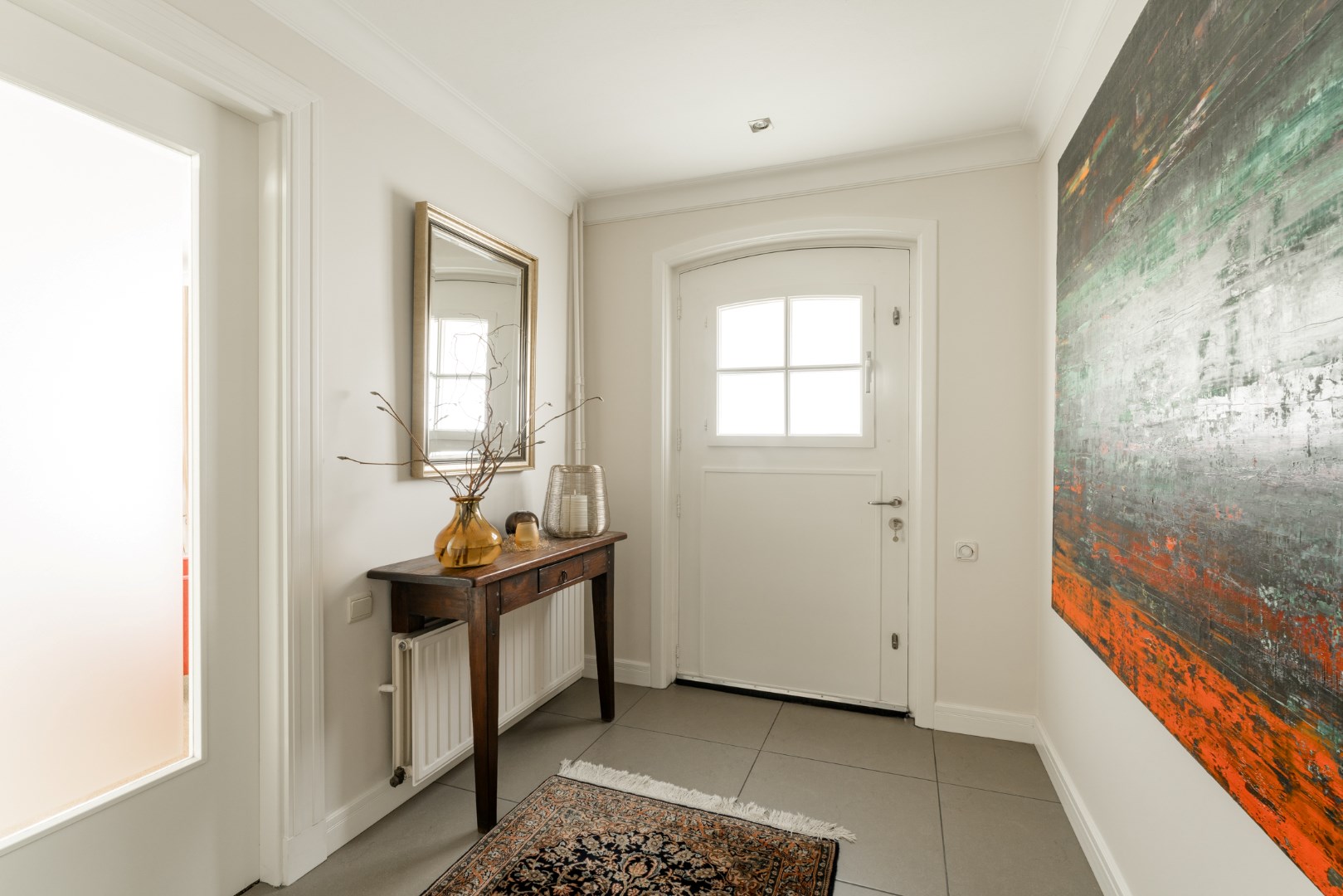 Via de inkomhal is er toegang tot het privatief gedeelte, een apart gastentoilet en de open leefruimte.