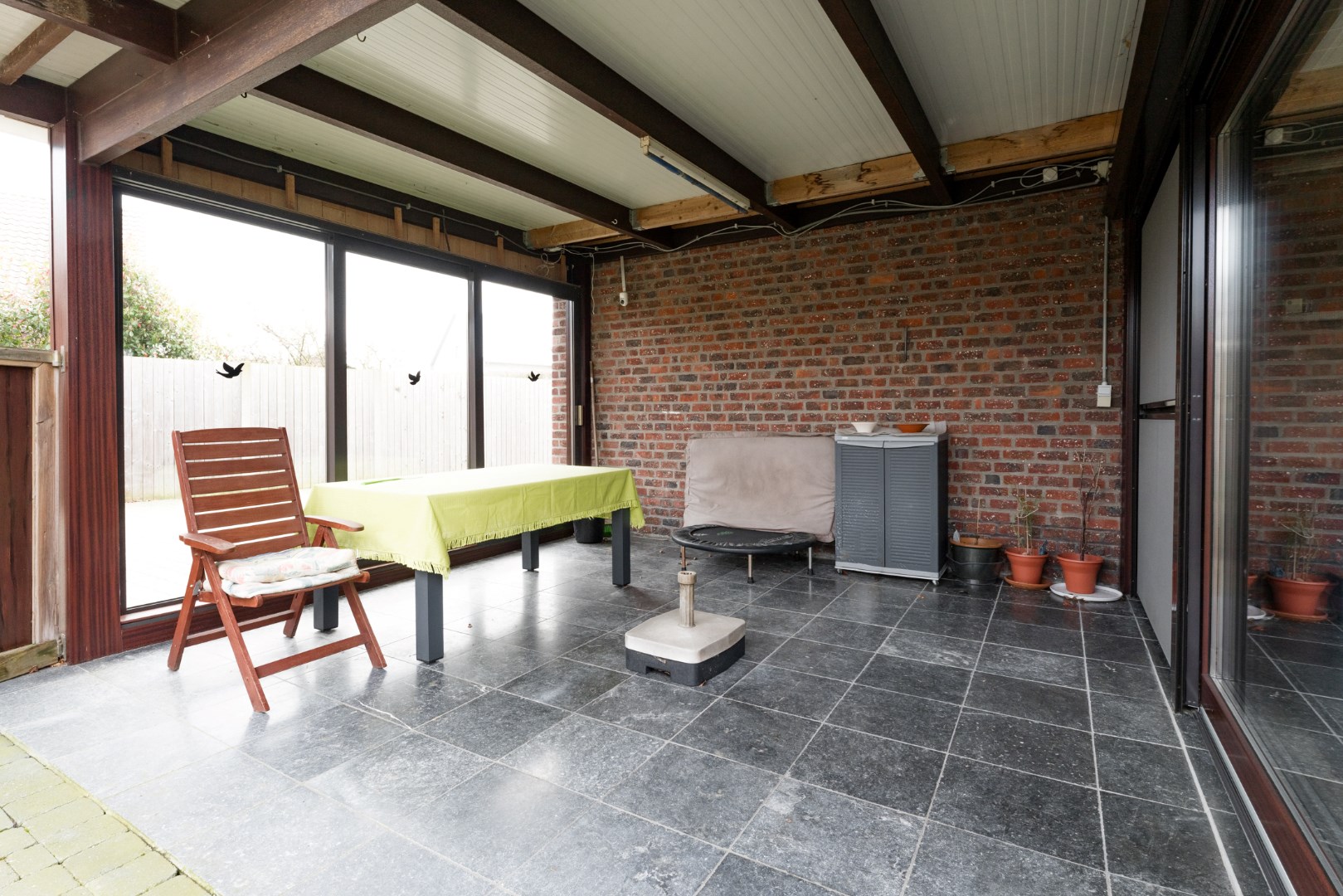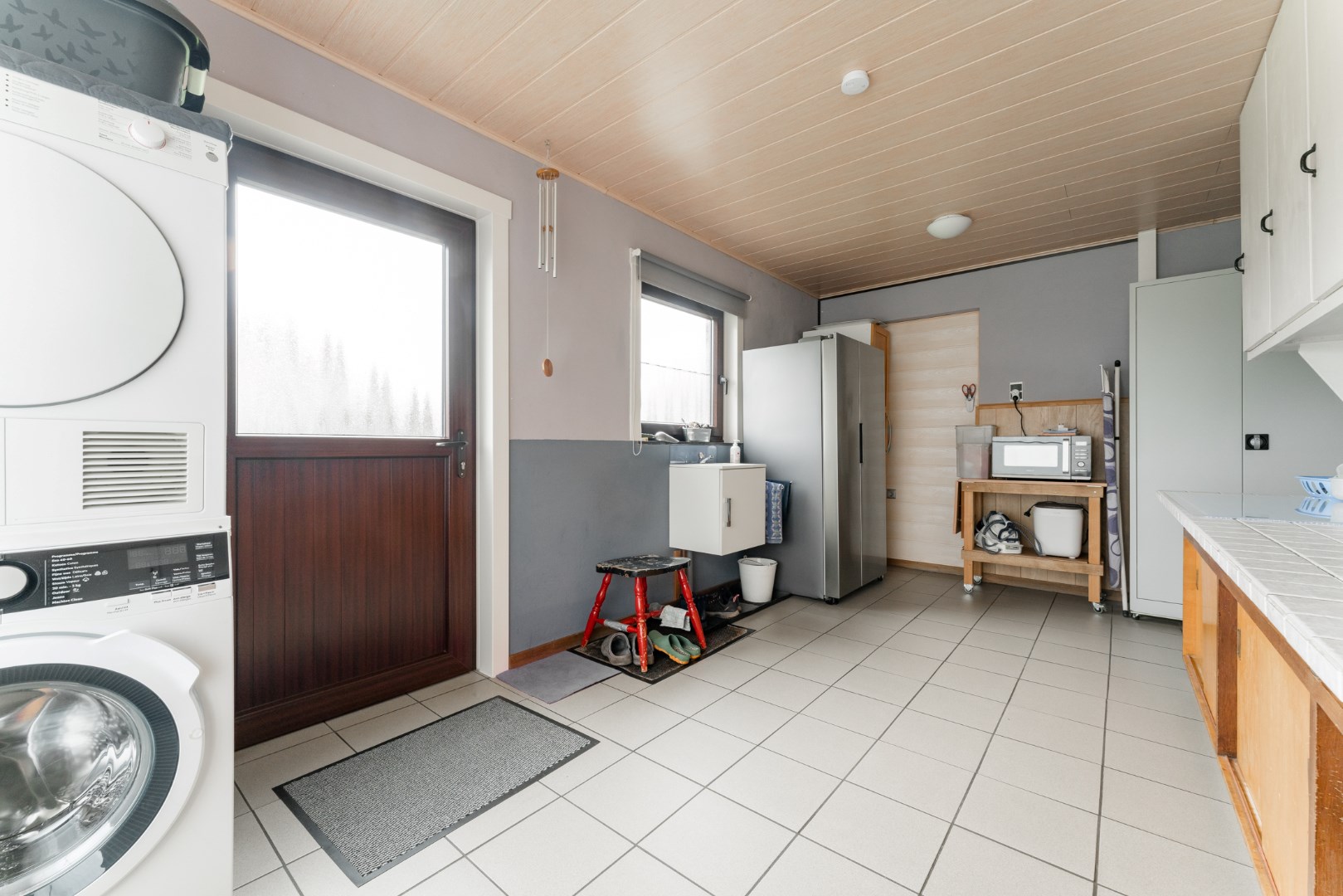 Ook beschikt de woning over een aangename kelderruimte om voorraad te stockeren. Verder vinden we hier de technische ruimte met ketel terug en de grondwaterpomp voor de tuin te besproeien.
