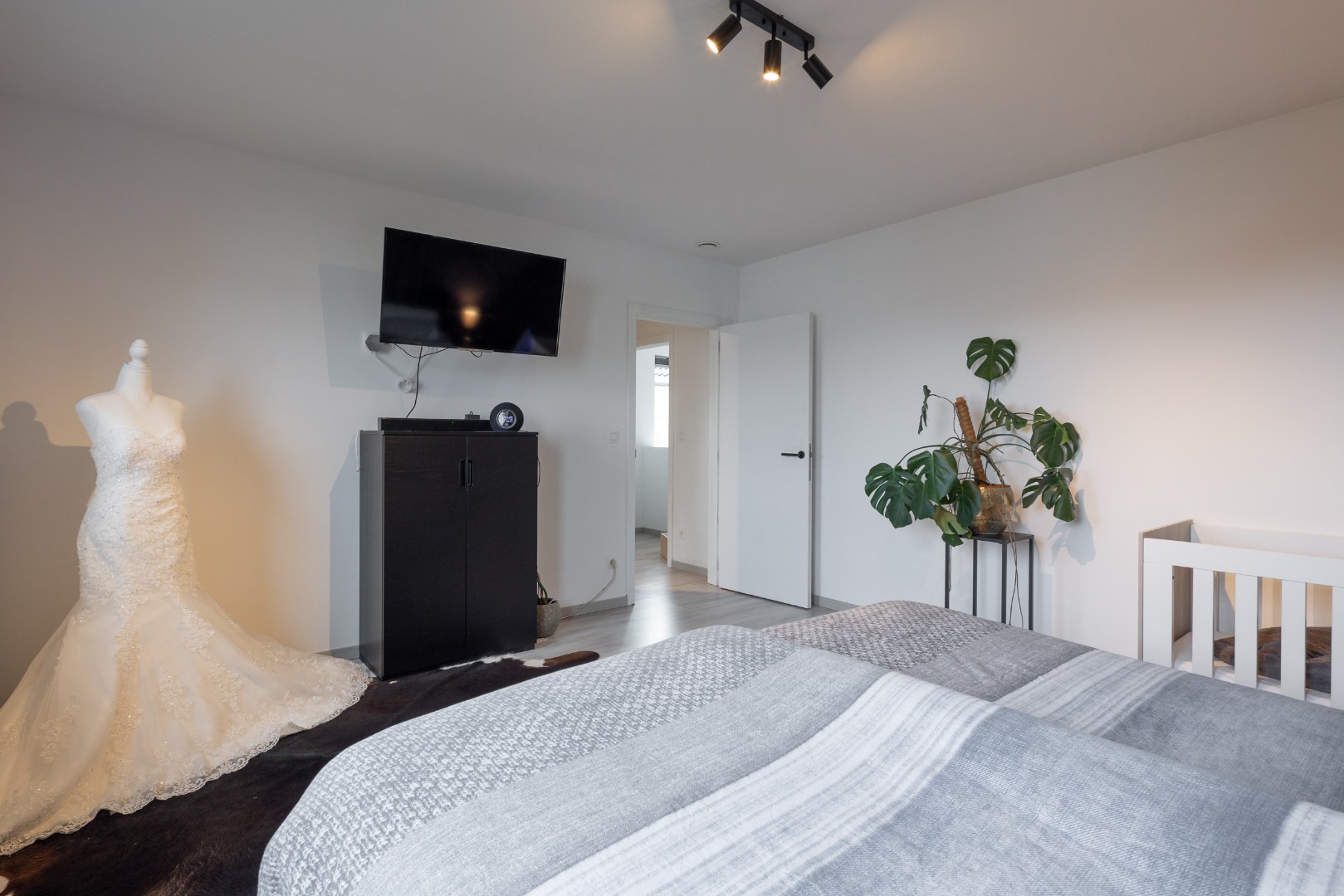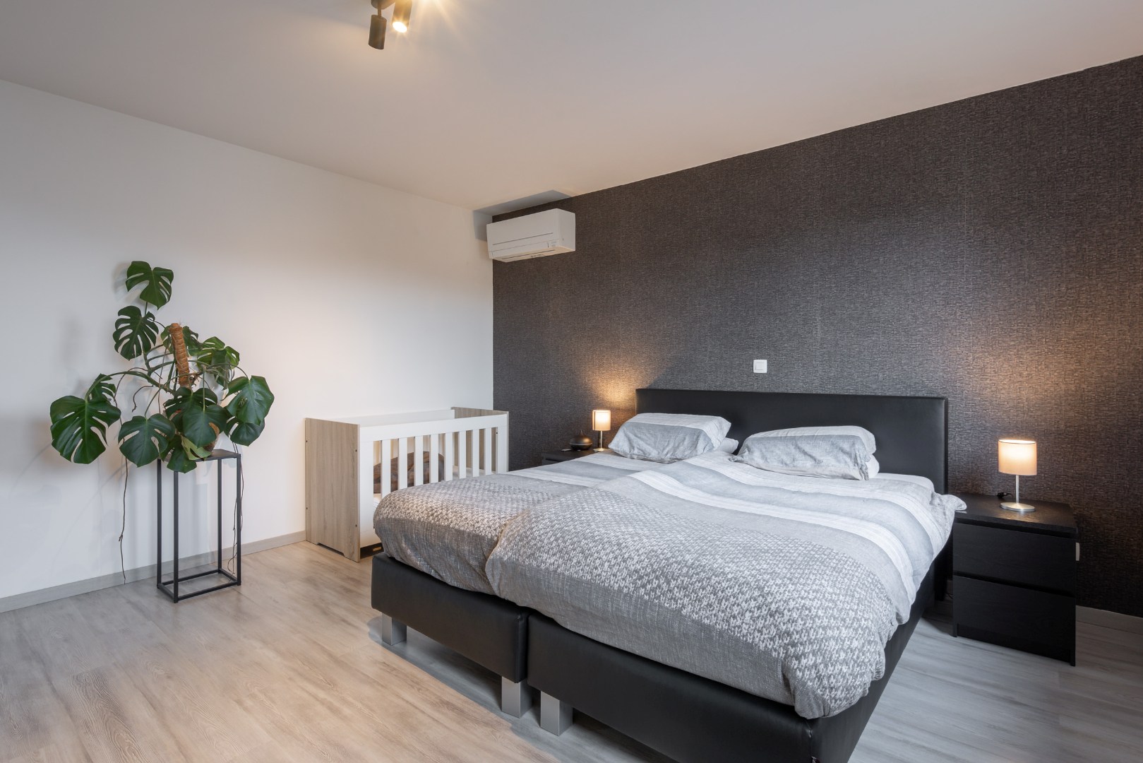 Op verdiep vinden we vervolgens drie slaapkamers, een apart toilet en een badkamer. De badkamer is voorzien van dubbele lavabo's, een inloopdouche en een vrijstaand bad. Verder vinden we in twee slaapkamers al airco-units terug. Ook is de master bedroom voorzien van een ingebouwde dressing.
