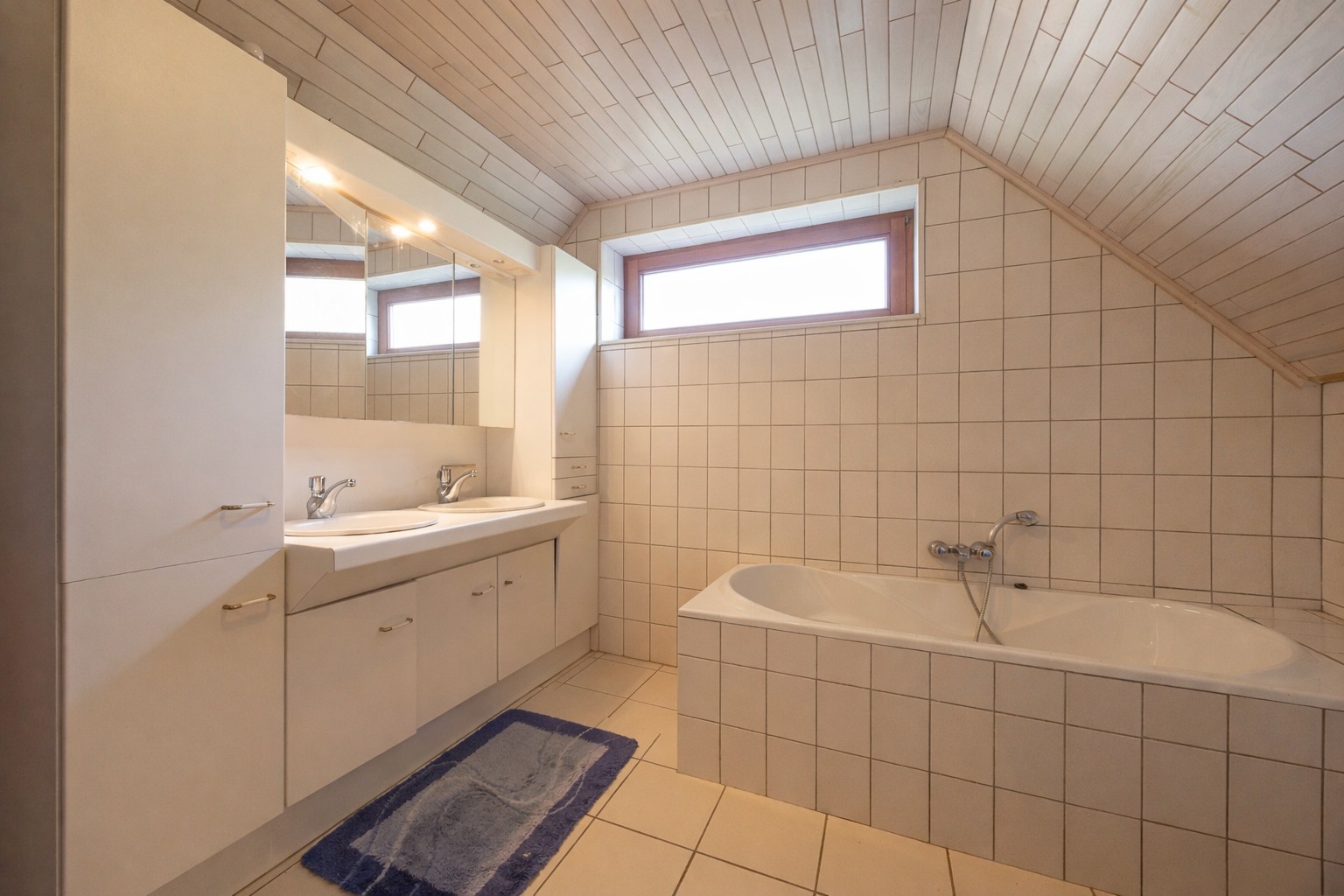 Op verdiep vinden we vervolgens maar liefst 4 slaapkamers terug. Ook bevindt zich hier de badkamer met bad, douche, toilet en dubbele lavabo. Verder is er nog een bergruimte en een luikje om de ruime opbergzolder te betreden.