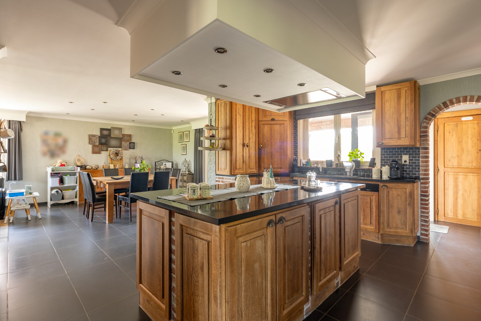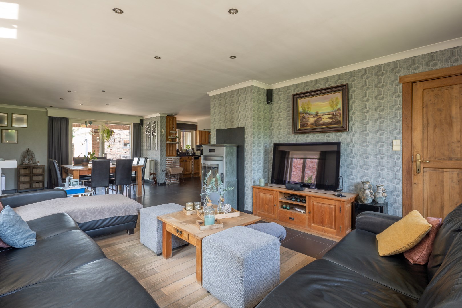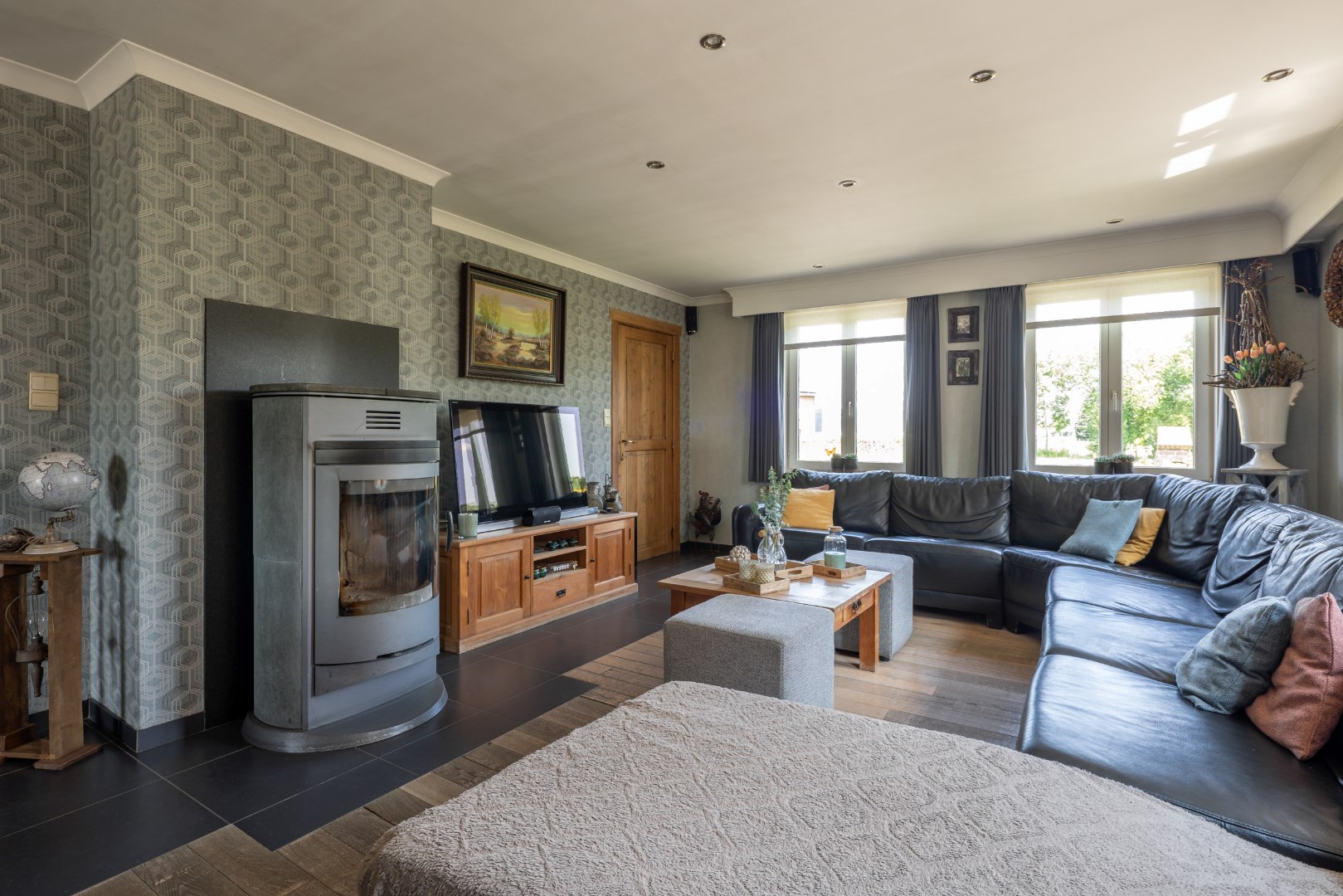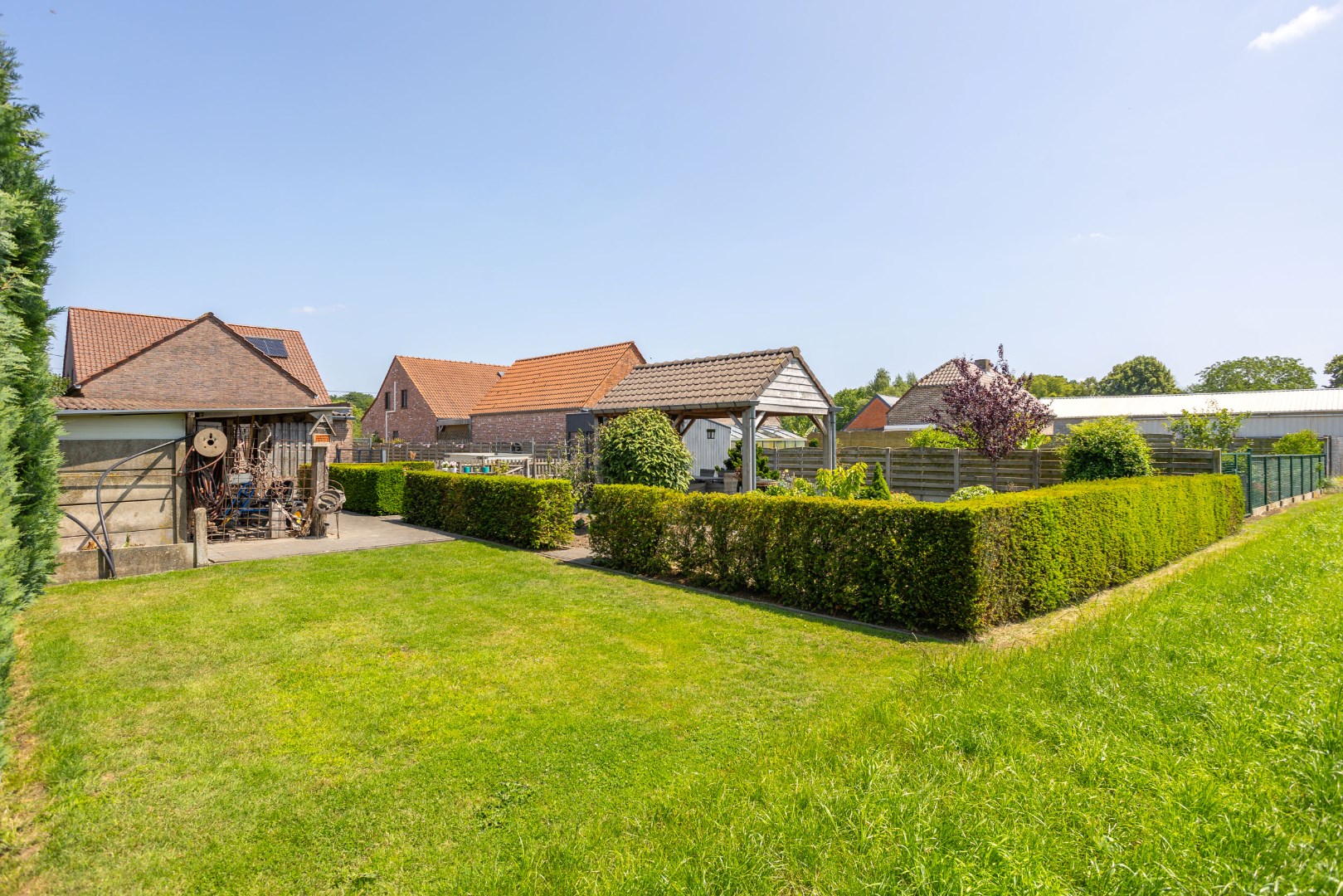 Deze goed onderhouden gezinswoning kijkt uit op de weiden en ligt op een perceel van 10 are 37 ca. De woning bestaat uit een inkomhal voor, bureauruimte/slaapkamer, ruime woonkamer (inclusief kachel), keuken met eiland, badkamer (bad/douche/wastafels), wasruimte/berging, apart toilet en achterinkom, trap naar boven, overloop, 3 slaapkamers, toilet. Zolderruimte. Vaste trap naar kelder, volledig onderkelderd. Overdekt terras aan achtergevel. Garage + opslagruimte. Op achterkant perceel nog een prieeltje. Perceel is volledig omheind. Condensatie-stookolieketel. Zonneboiler. Stroom wordt conform afgeleverd. EPC label C - 235 kwh/m2 jaar. Kortom een woning die alle troeven in handen heeft om rustig en aangenaam te kunnen wonen. Voor meer info of een bezoek contacteer ons op 011/64 55 00 of info@vastgoedfransen.be.