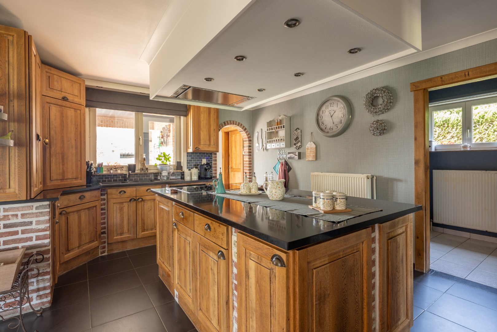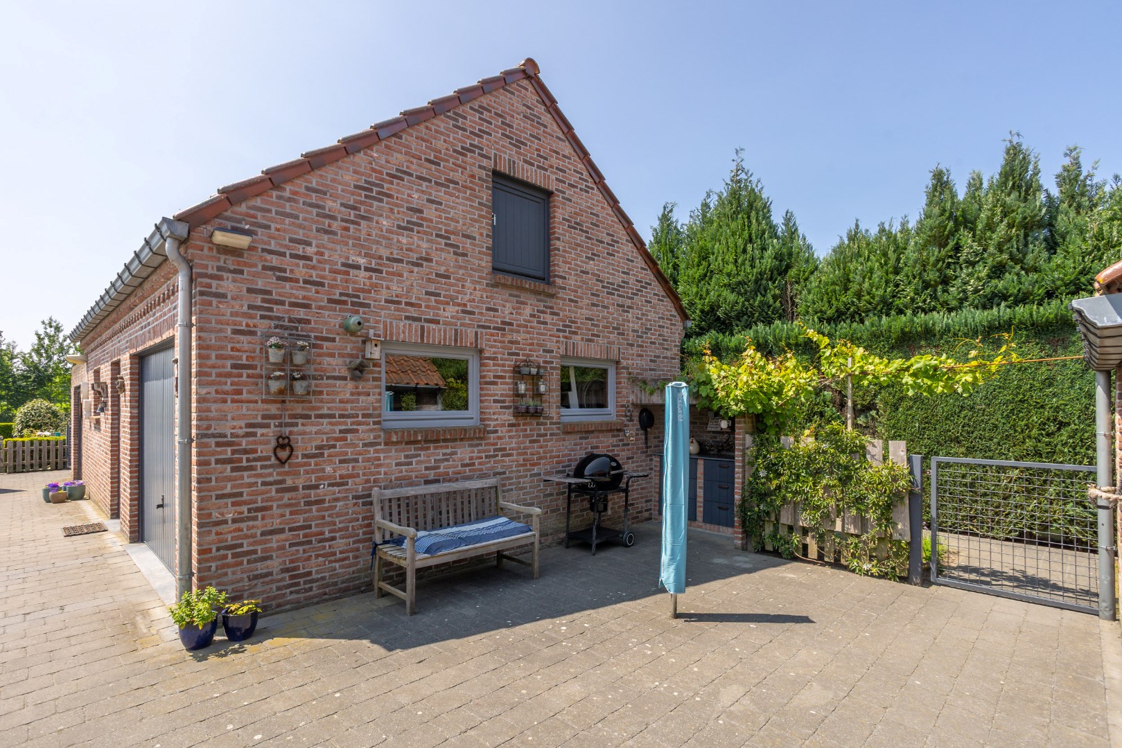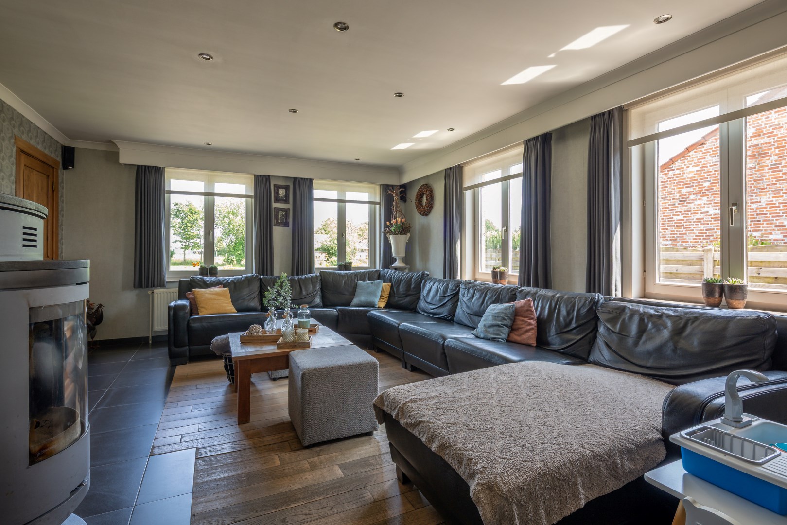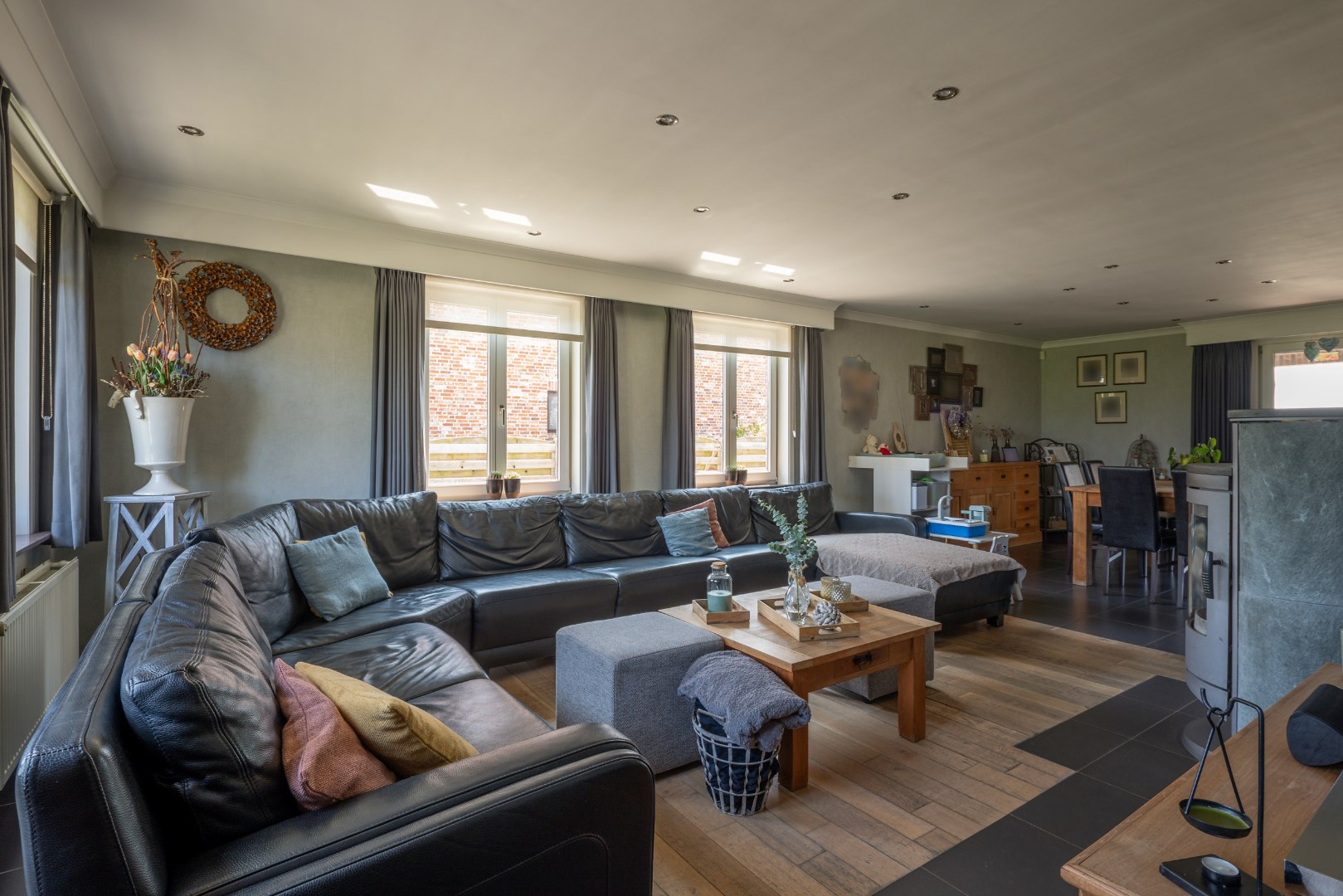 Deze goed onderhouden gezinswoning kijkt uit op de weiden en ligt op een perceel van 10 are 37 ca. De woning bestaat uit een inkomhal voor, bureauruimte/slaapkamer, ruime woonkamer (inclusief kachel), keuken met eiland, badkamer (bad/douche/wastafels), wasruimte/berging, apart toilet en achterinkom, trap naar boven, overloop, 3 slaapkamers, toilet. Zolderruimte. Vaste trap naar kelder, volledig onderkelderd. Overdekt terras aan achtergevel. Garage + opslagruimte. Op achterkant perceel nog een prieeltje. Perceel is volledig omheind. Condensatie-stookolieketel. Zonneboiler. Stroom wordt conform afgeleverd. EPC label C - 235 kwh/m2 jaar. Kortom een woning die alle troeven in handen heeft om rustig en aangenaam te kunnen wonen. Voor meer info of een bezoek contacteer ons op 011/64 55 00 of info@vastgoedfransen.be.
