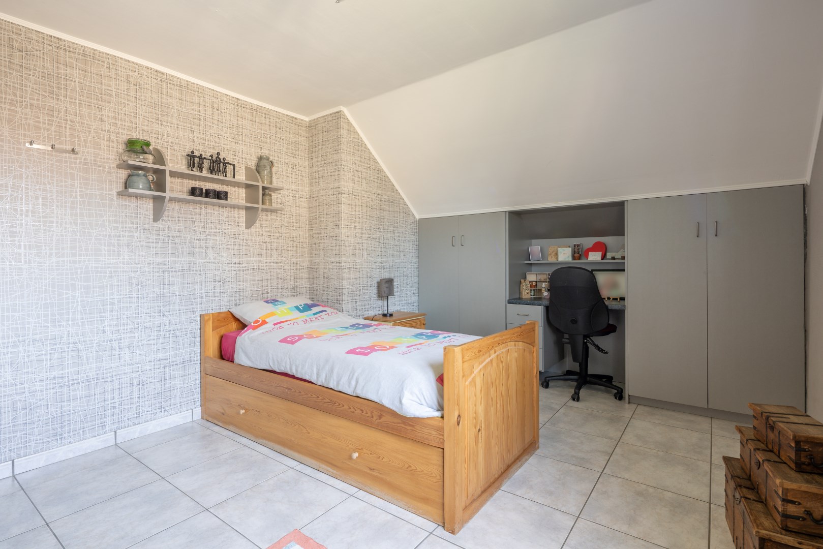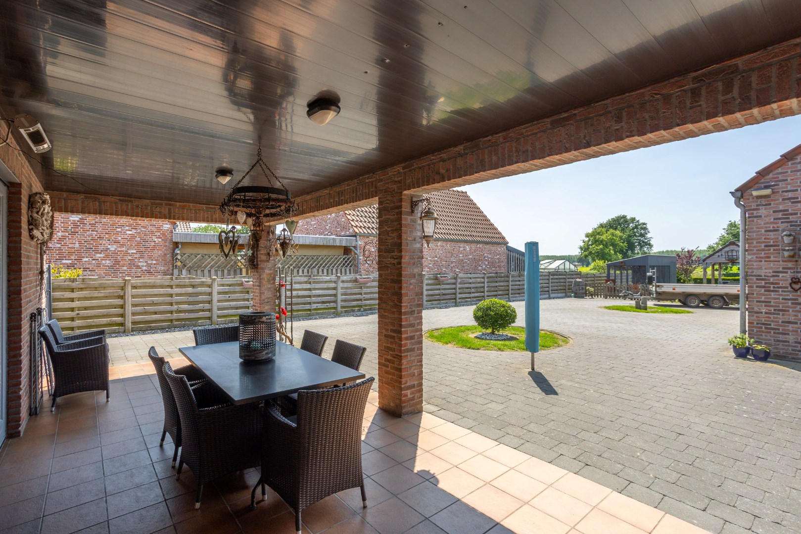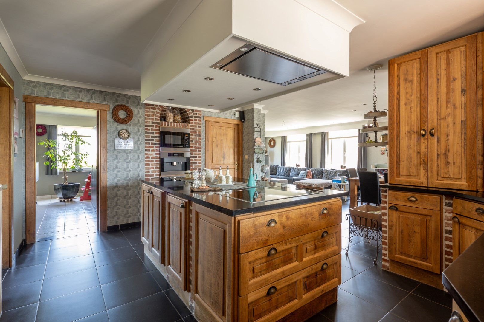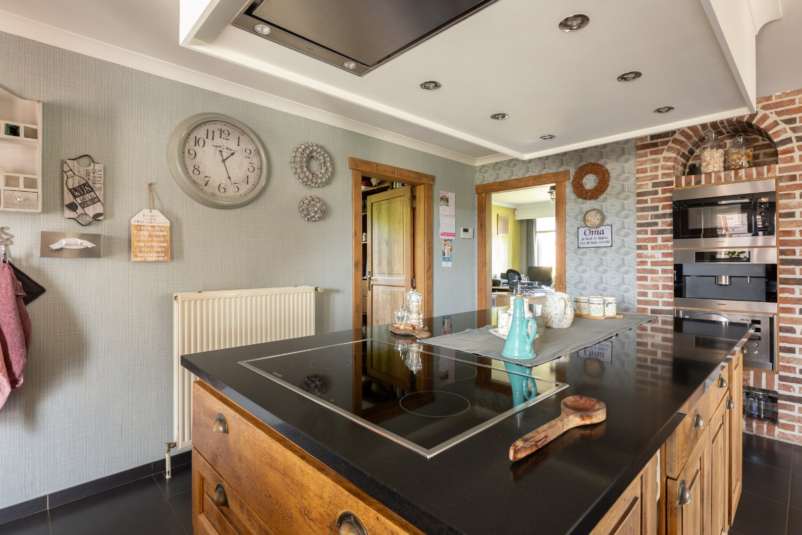 Deze goed onderhouden gezinswoning kijkt uit op de weiden en ligt op een perceel van 10 are 37 ca. De woning bestaat uit een inkomhal voor, bureauruimte/slaapkamer, ruime woonkamer (inclusief kachel), keuken met eiland, badkamer (bad/douche/wastafels), wasruimte/berging, apart toilet en achterinkom, trap naar boven, overloop, 3 slaapkamers, toilet. Zolderruimte. Vaste trap naar kelder, volledig onderkelderd. Overdekt terras aan achtergevel. Garage + opslagruimte. Op achterkant perceel nog een prieeltje. Perceel is volledig omheind. Condensatie-stookolieketel. Zonneboiler. Stroom wordt conform afgeleverd. EPC label C - 235 kwh/m2 jaar. Kortom een woning die alle troeven in handen heeft om rustig en aangenaam te kunnen wonen. Voor meer info of een bezoek contacteer ons op 011/64 55 00 of info@vastgoedfransen.be.