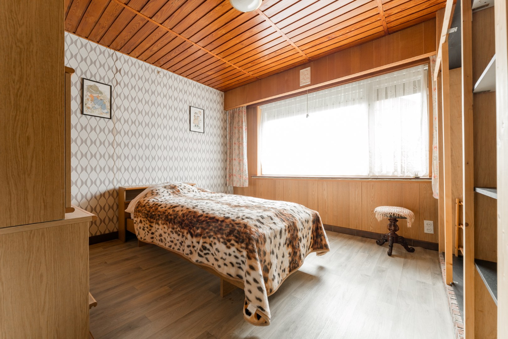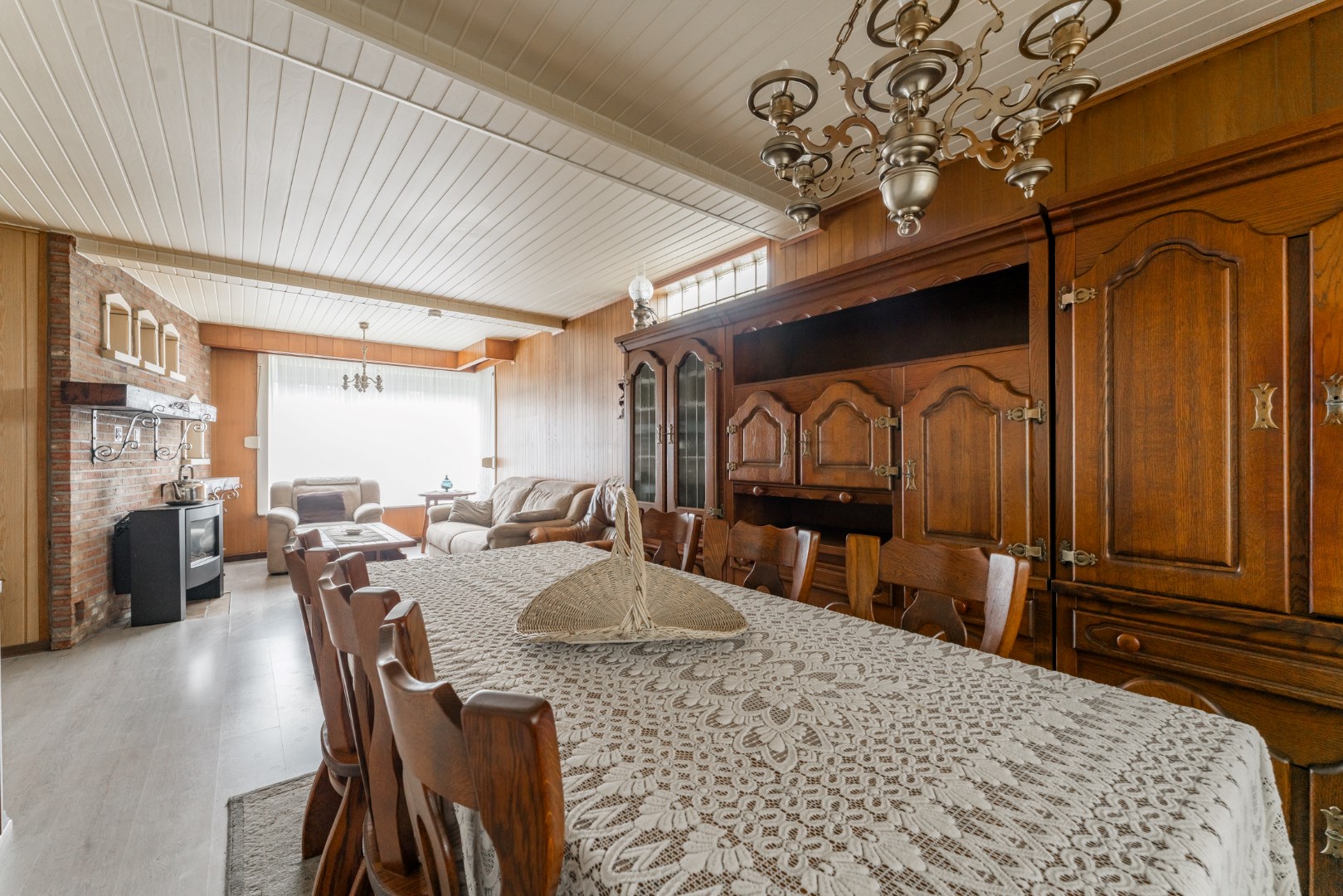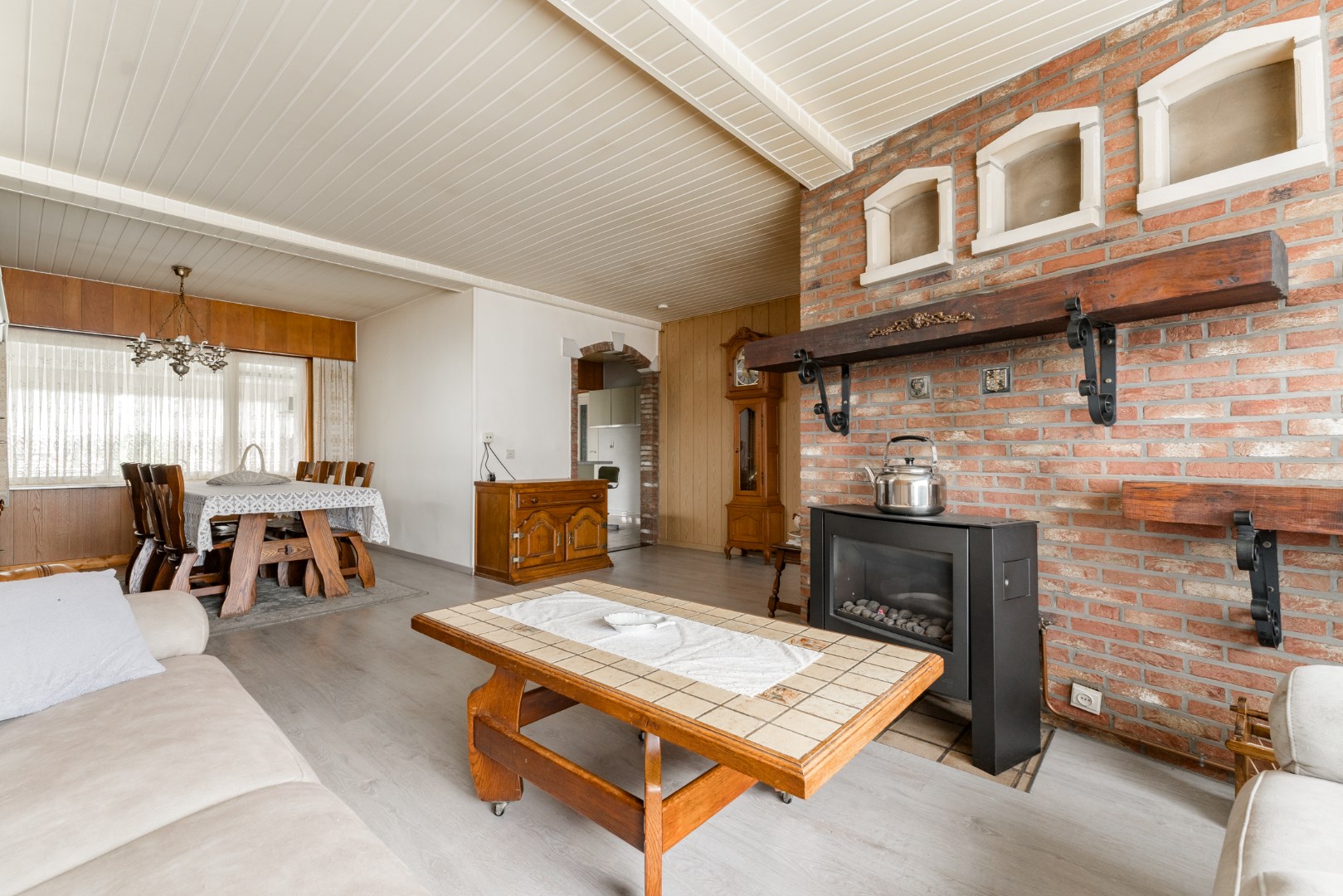 De woning ligt op een prachtig perceel dat maar liefst 11a45ca groot is. Via de inkomhal is er de toegang naar de ruime leefruimte. Deze biedt de mogelijkheid om een ruime zetel te plaatsen alsook een grote eetkamertafel. Aan de leefruimte grenst uiteraard de keuken. Deze staat in contact met de koele berging en de hal achter. Verder is er een badkamer met douche en toilet en zijn er 2 slaapkamers gelijkvloers voorzien. Via een vlizotrap is er de mogelijkheid om op zolder te geraken waar eventueel nog kamers bijgemaakt kunnen worden.