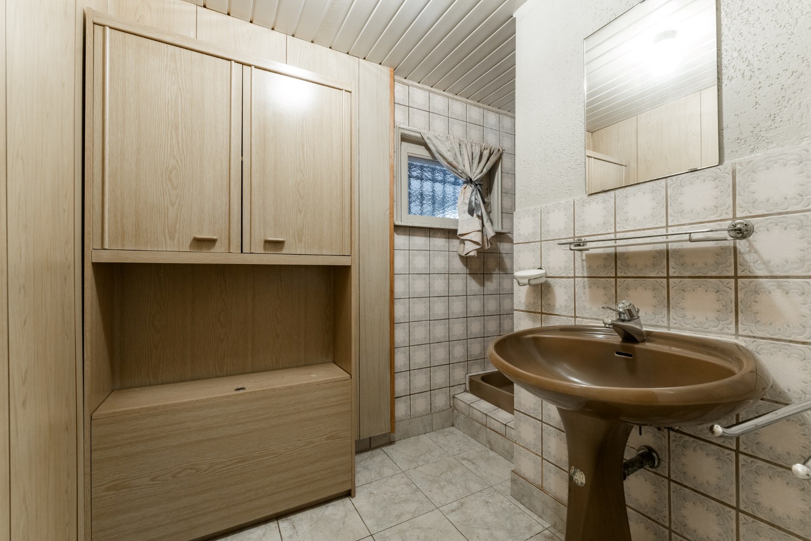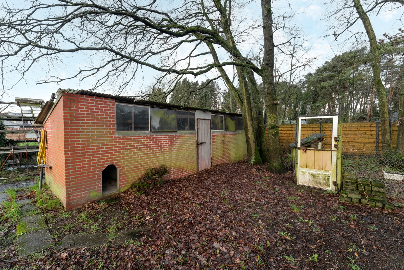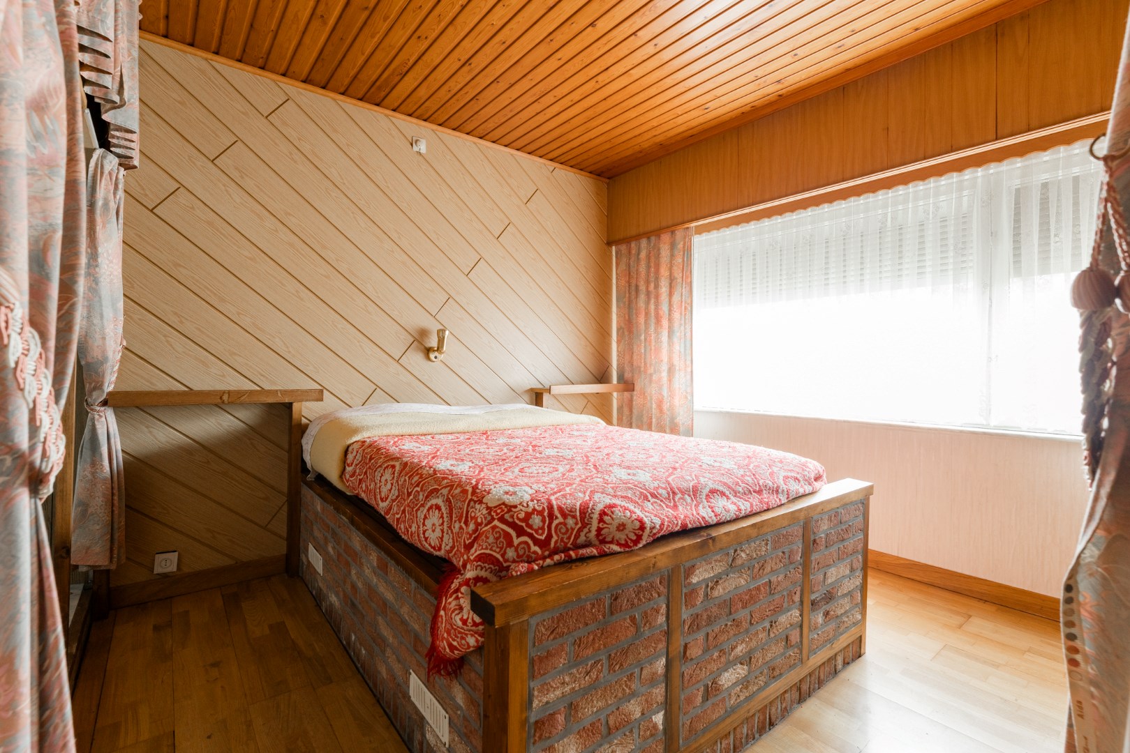 De woning ligt op een prachtig perceel dat maar liefst 11a45ca groot is. Via de inkomhal is er de toegang naar de ruime leefruimte. Deze biedt de mogelijkheid om een ruime zetel te plaatsen alsook een grote eetkamertafel. Aan de leefruimte grenst uiteraard de keuken. Deze staat in contact met de koele berging en de hal achter. Verder is er een badkamer met douche en toilet en zijn er 2 slaapkamers gelijkvloers voorzien. Via een vlizotrap is er de mogelijkheid om op zolder te geraken waar eventueel nog kamers bijgemaakt kunnen worden.
