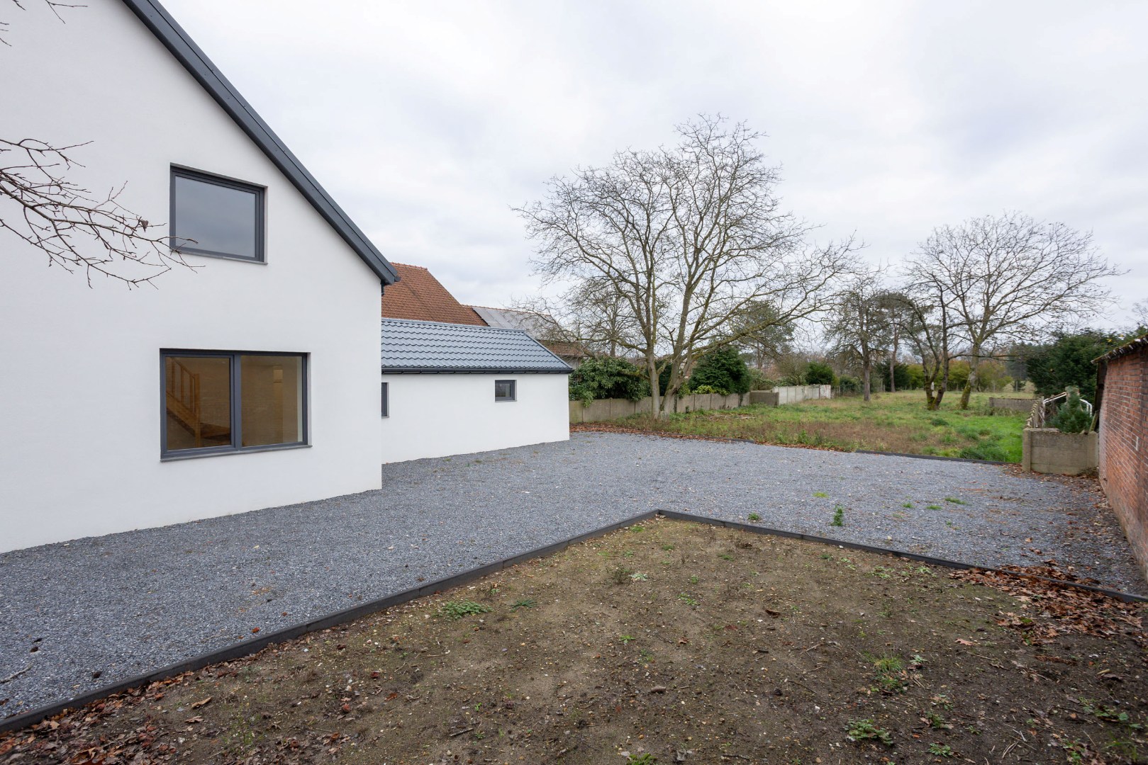 Buiten vinden we een mooi omheind perceel, deels al aangelegd. De woning beschikt over 16a80ca en heeft een mooi groen uitzicht naar achteren.