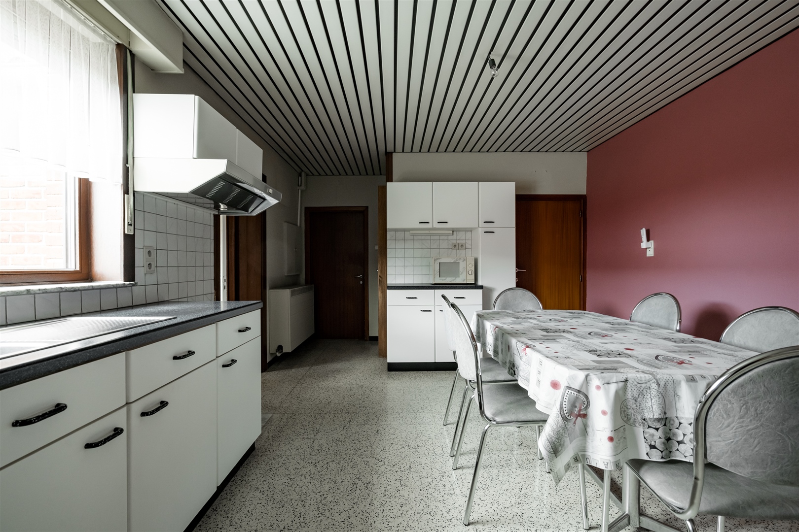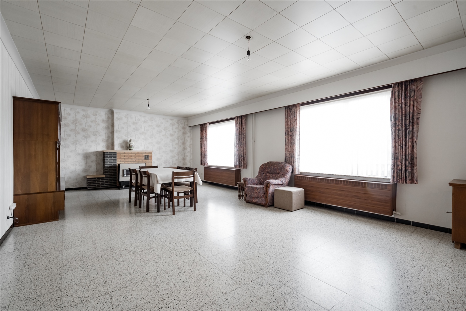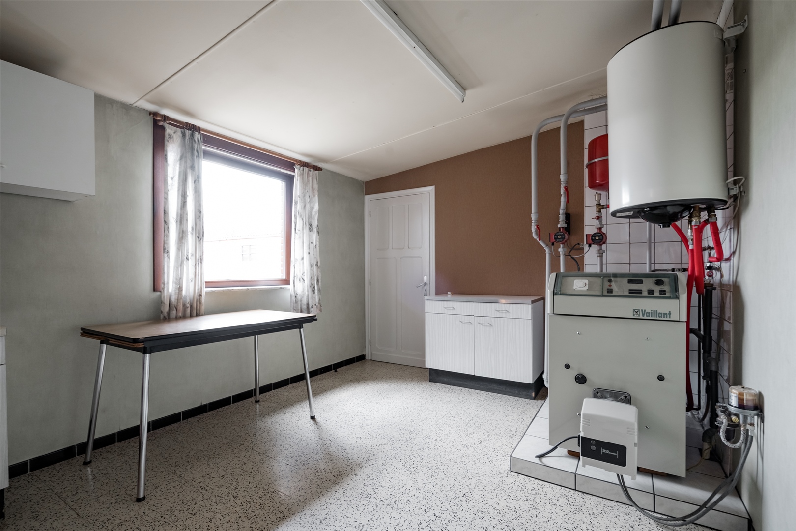 De woonst omvat op het gelijkvloers een ruime keuken, een zeer ruime woonkamer, een apart toilet, 2 slaapkamers, badkamer, cv plaats met een gasketel van 2015, een 2de apart toilet, en vele stallingen en bergingen